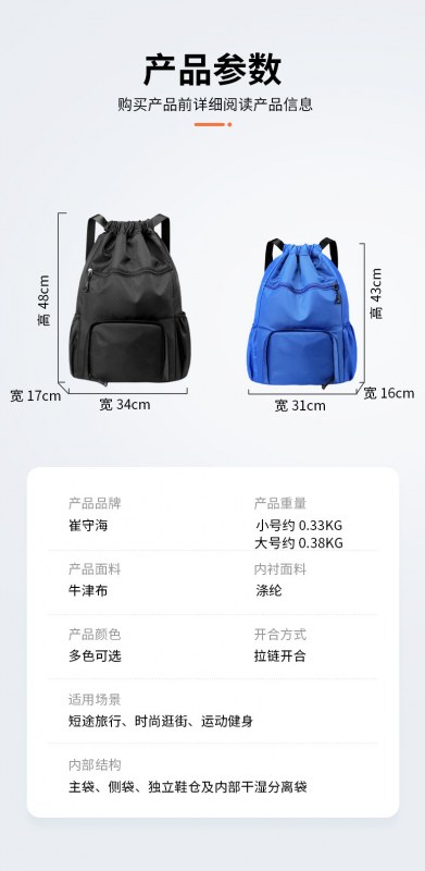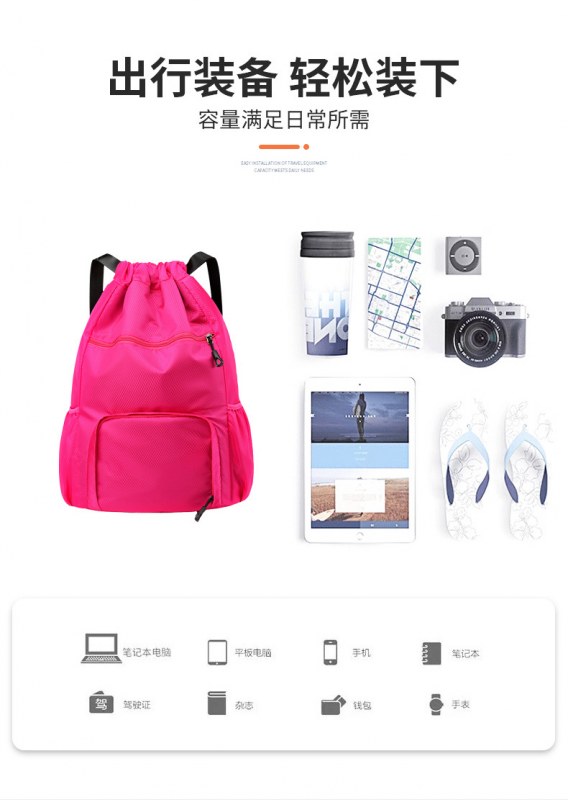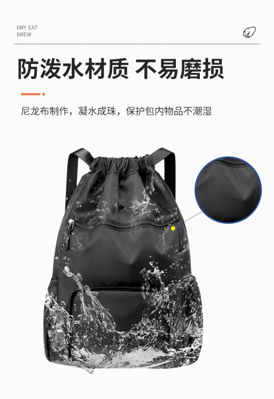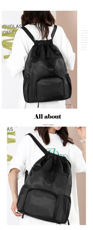 • 巾着ポケットバックパック大容量アウトドアユニセックスフィットネスバッグスポーツ旅行シンプルなバックパック巾着バッグ