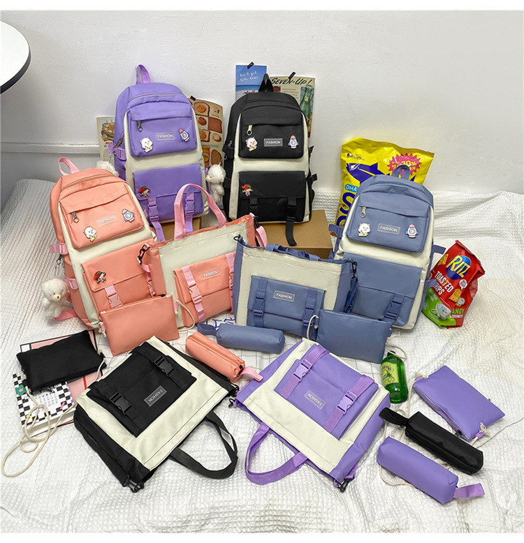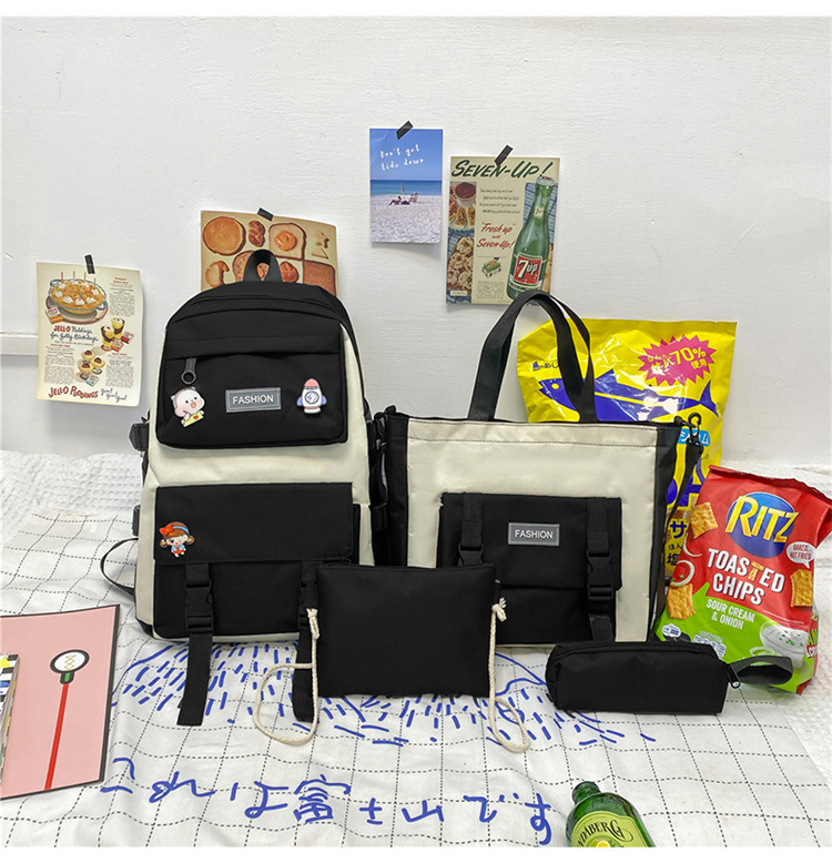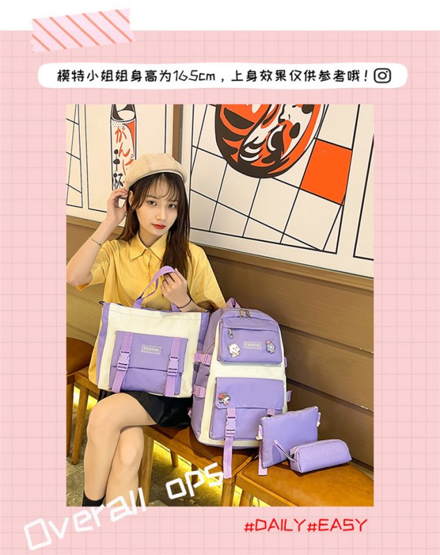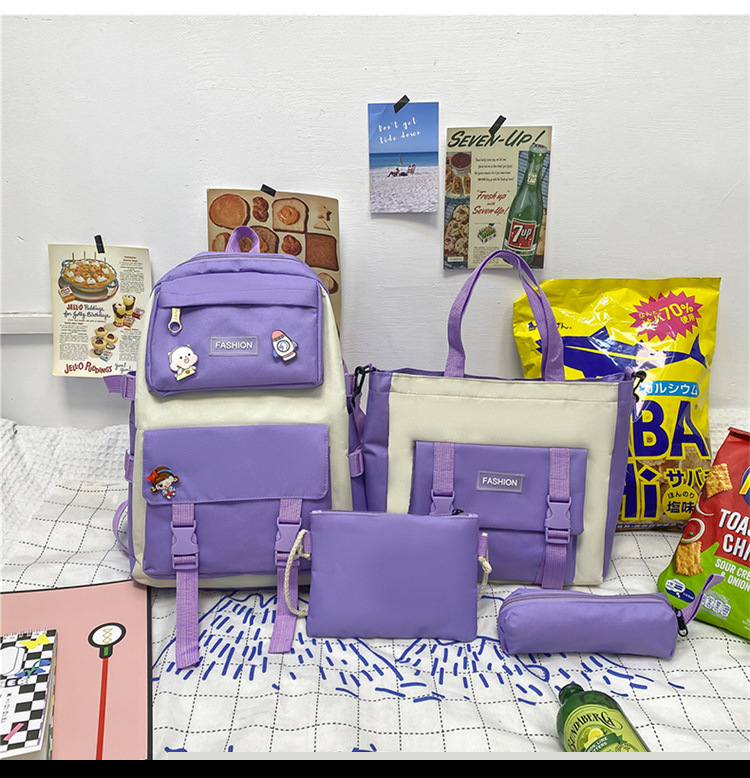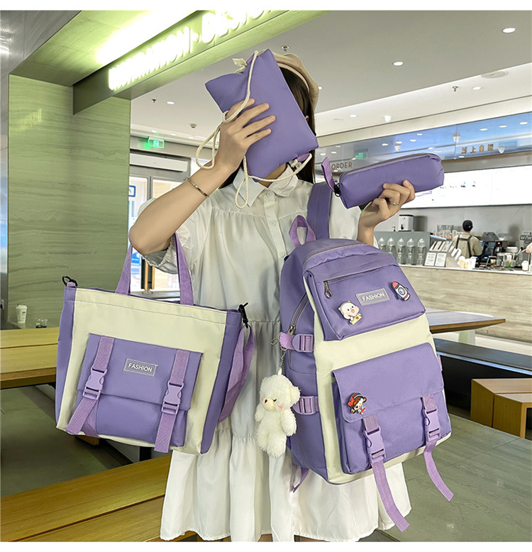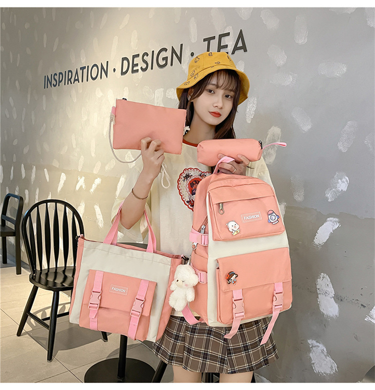 • ランドセル女子学生新韓国語バージョンフォレストスタイルバックパック 4 点セットカジュアル旅行オックスフォード布バックパック