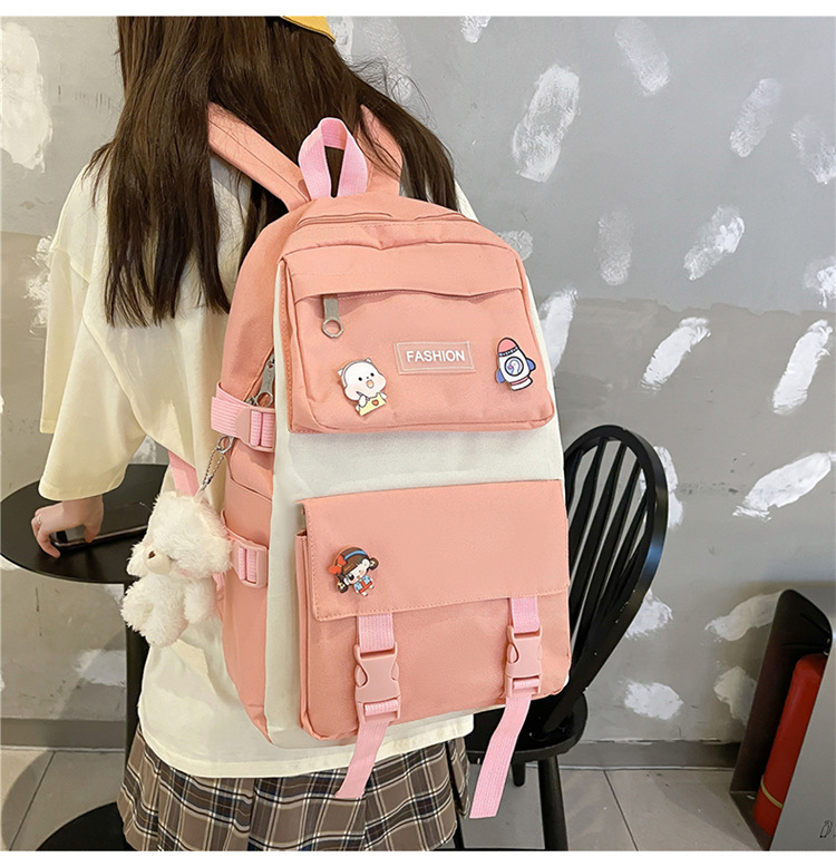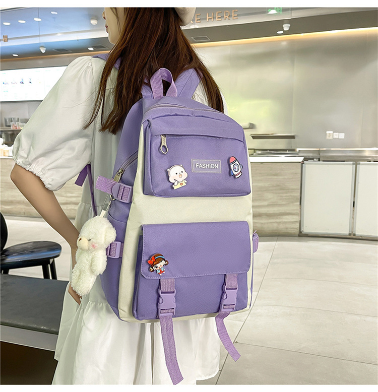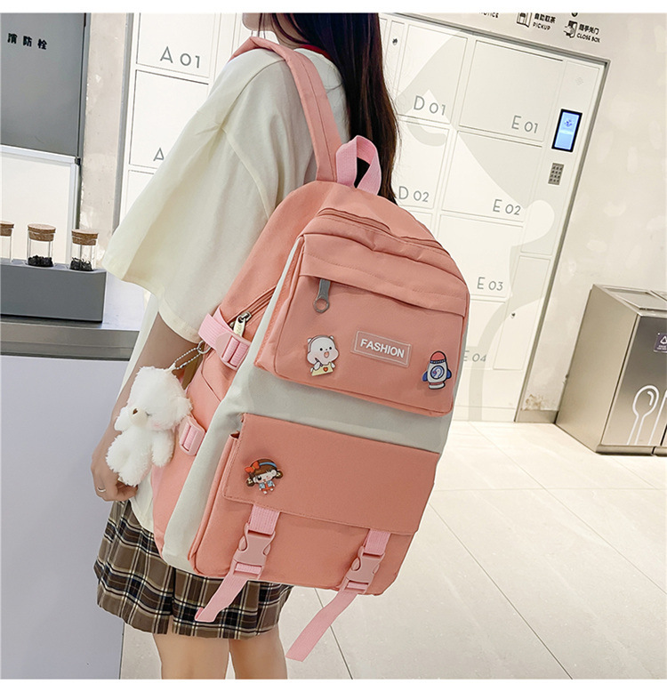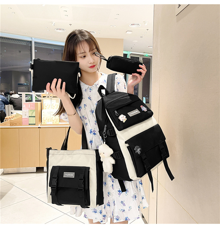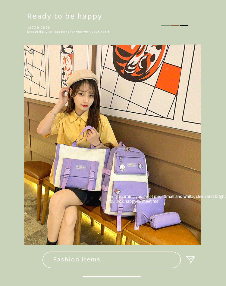 • ランドセル女子学生新韓国語バージョンフォレストスタイルバックパック 4 点セットカジュアル旅行オックスフォード布バックパック