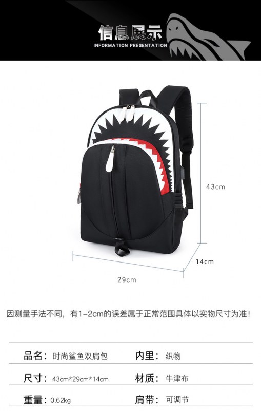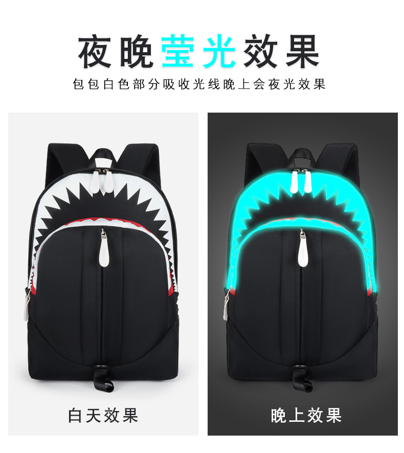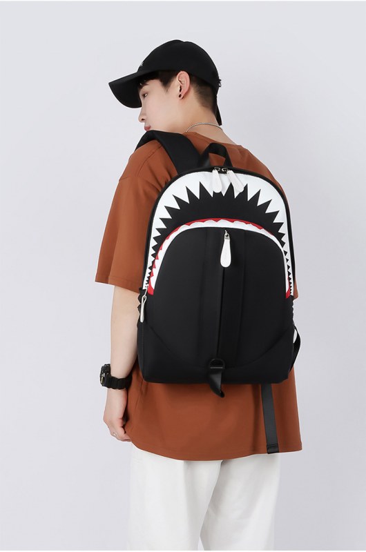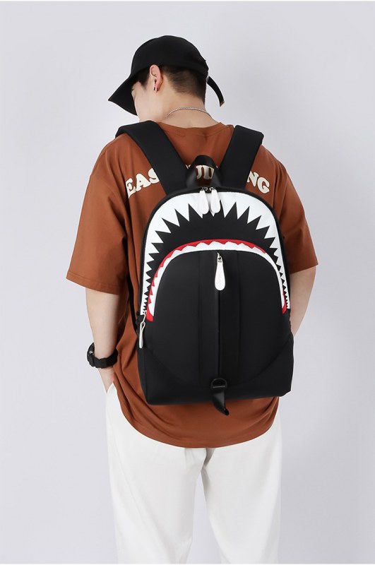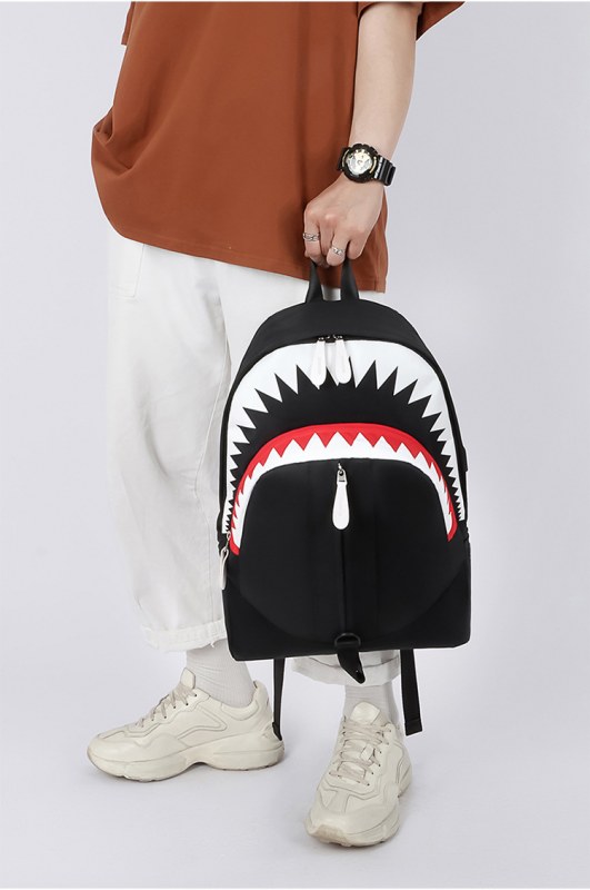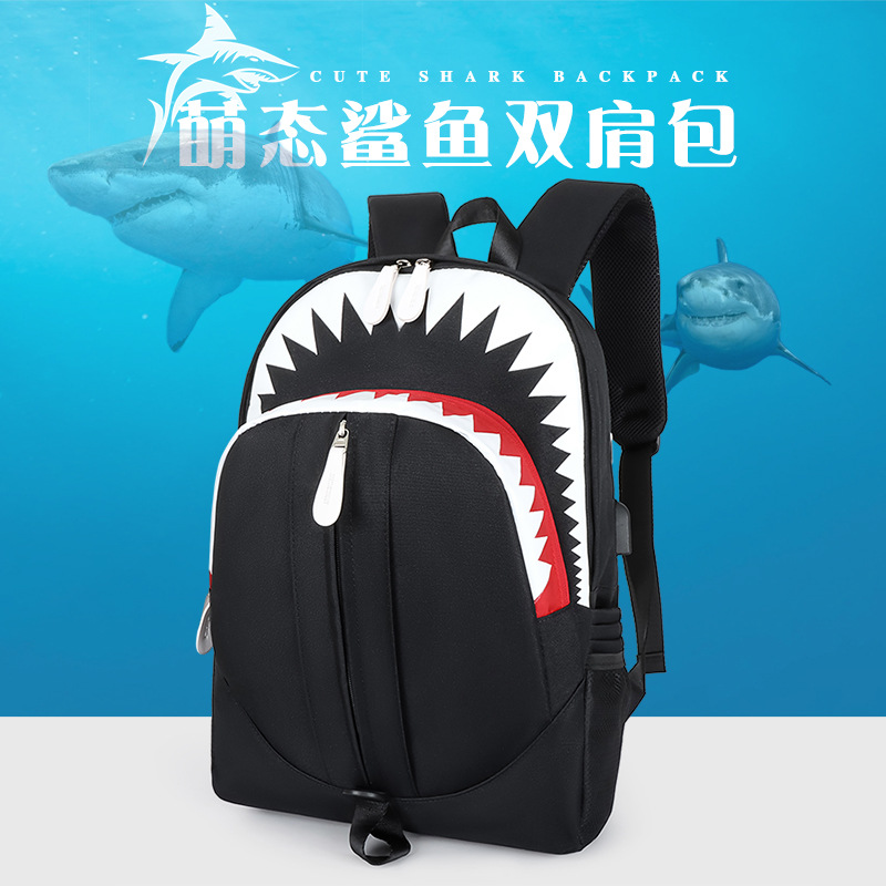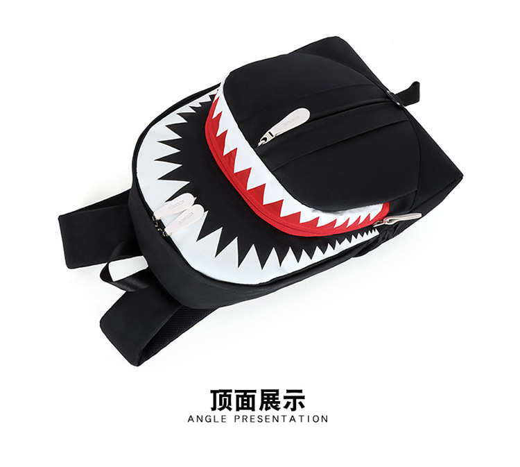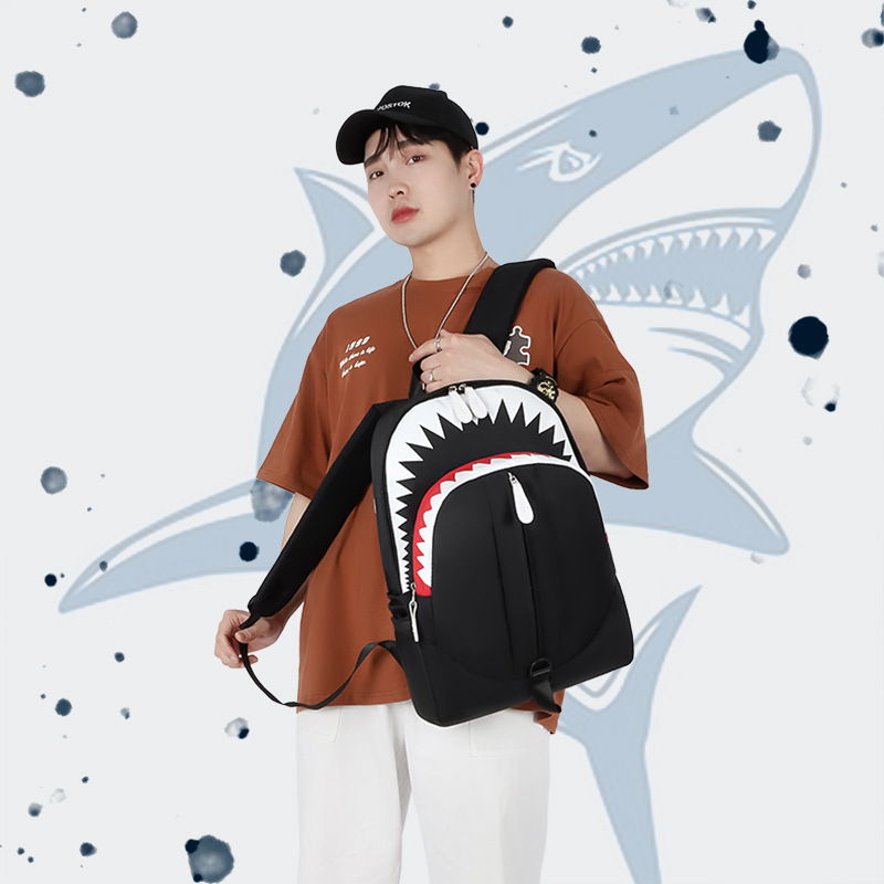 • 韓国スタイルのバックパックメンズ大口サメバックパック学生スクールバッグ個性トレンド大容量トラベルバッグ