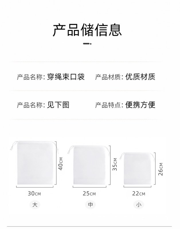 • 下着、靴、衣類の整理、巾着ポケット、つや消しバッグ、防水衣類と靴の包装袋、旅行用収納袋