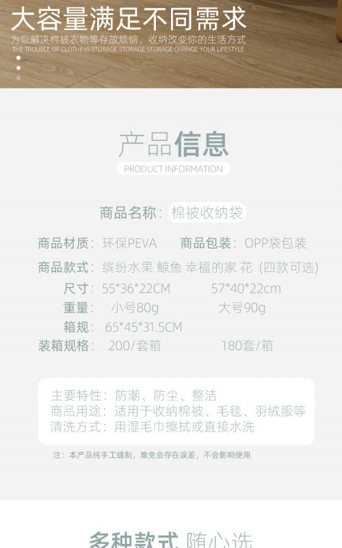 • 厚みのある PEVA 防湿透明キルトバッグキルト衣類収納袋大型衣類キルト収納袋