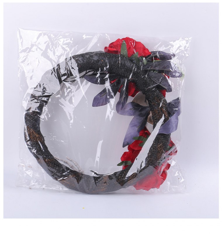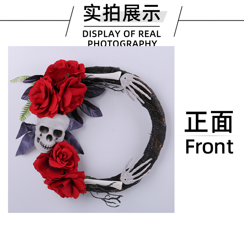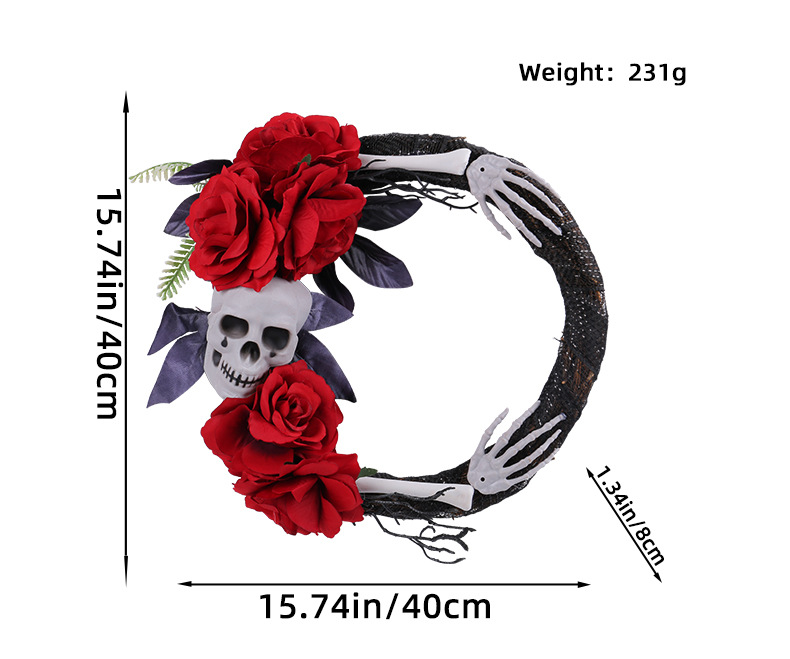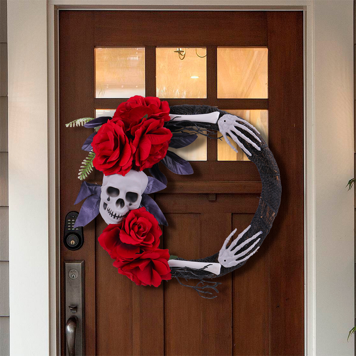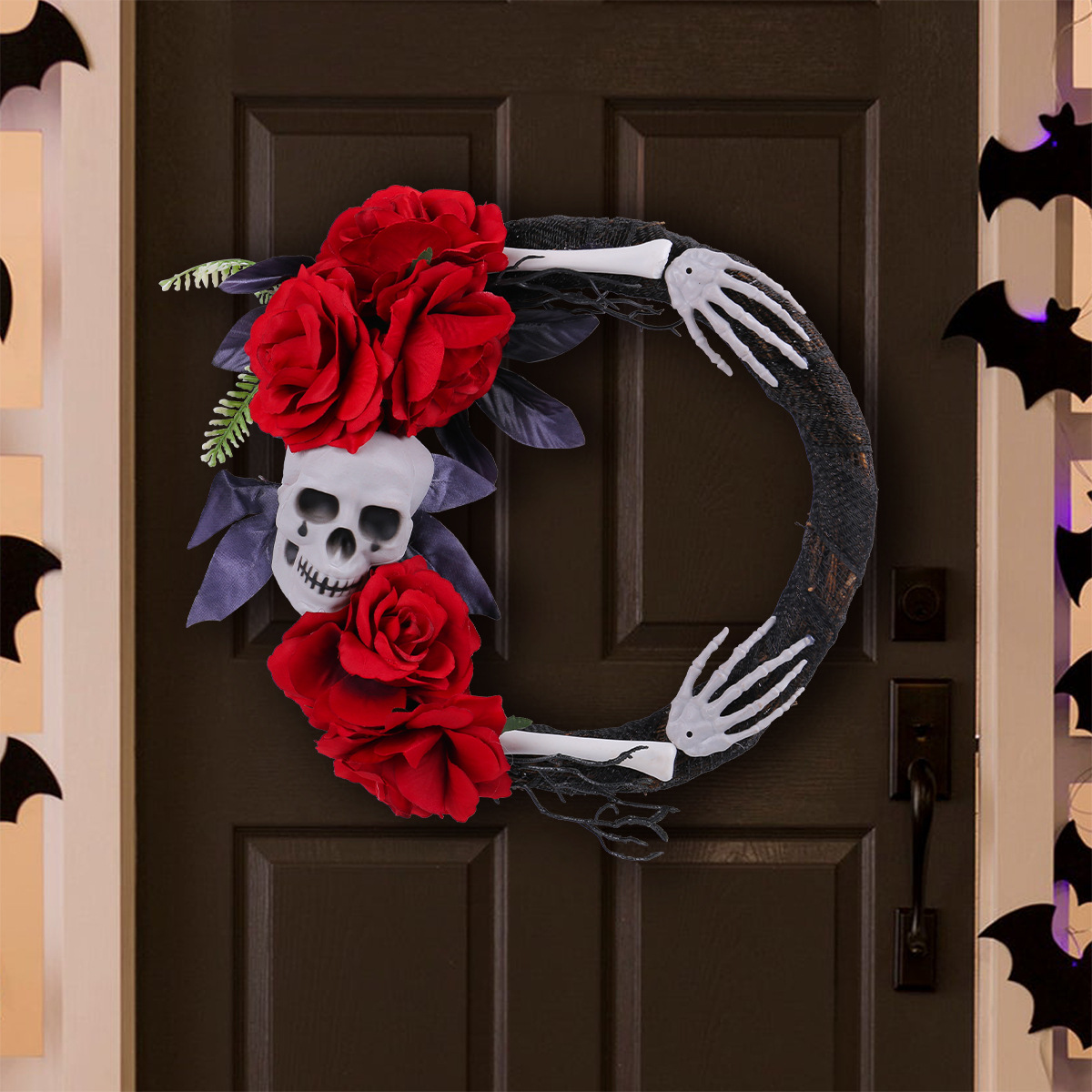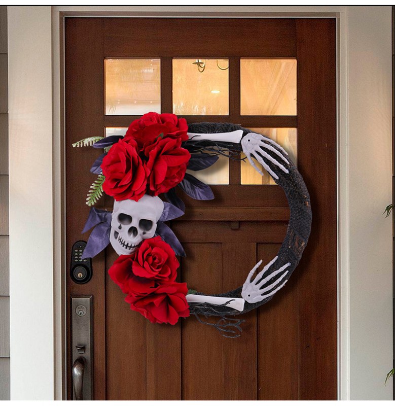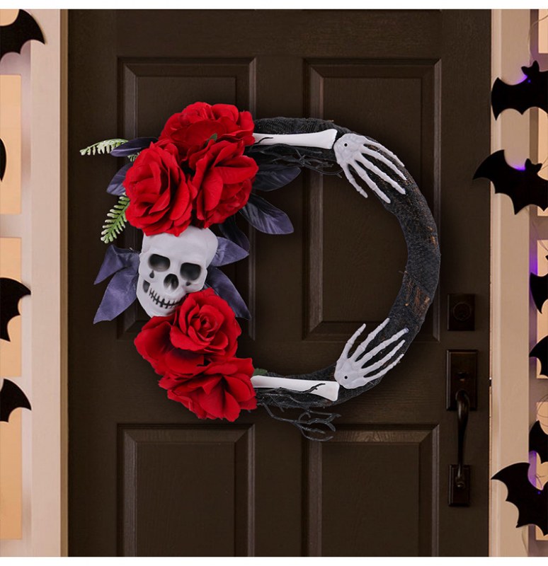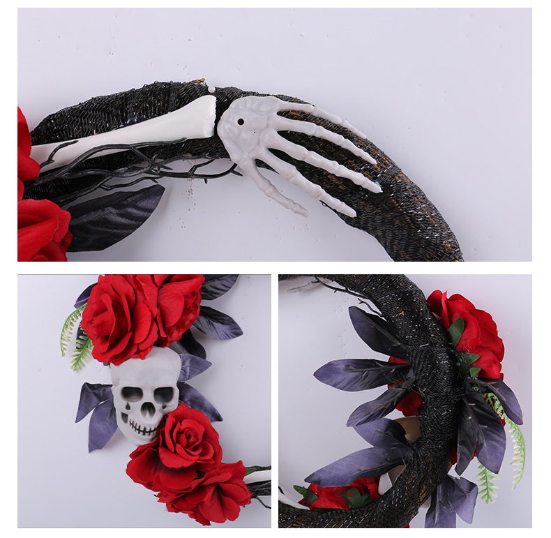 • Jingchen ハロウィン スカル レッド ローズ ゴースト ハンド ガーランド ゴースト フェスティバル パーティー会場 ホラー 小道具 装飾 籐 サークル