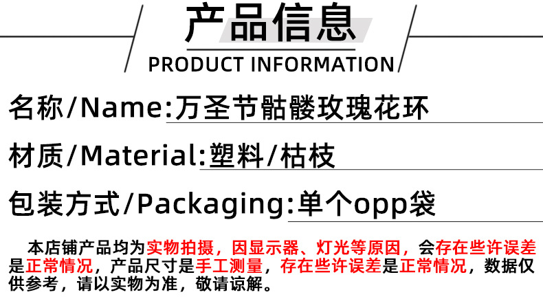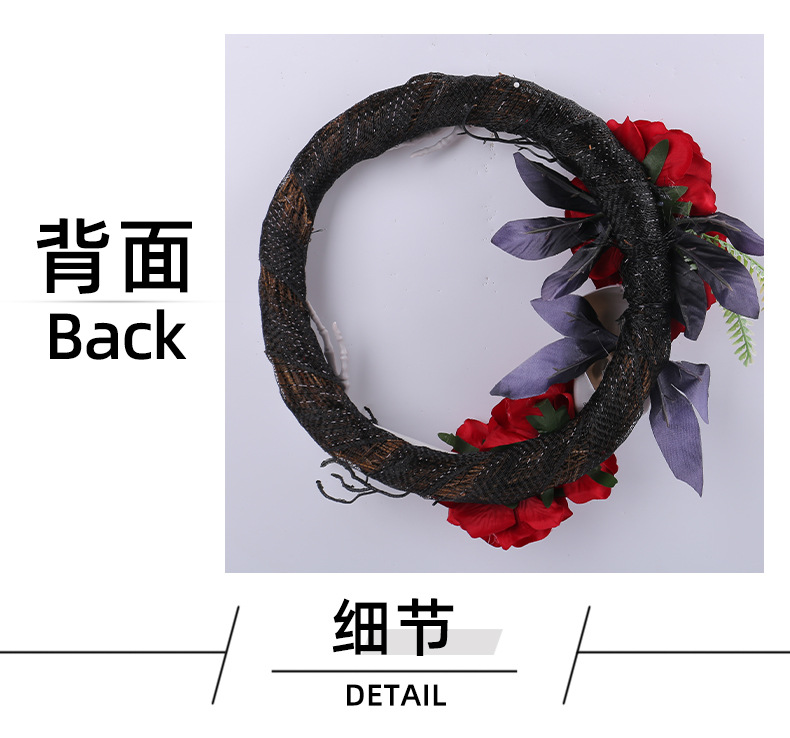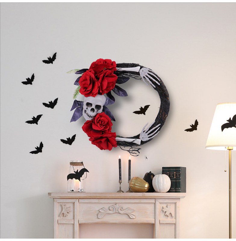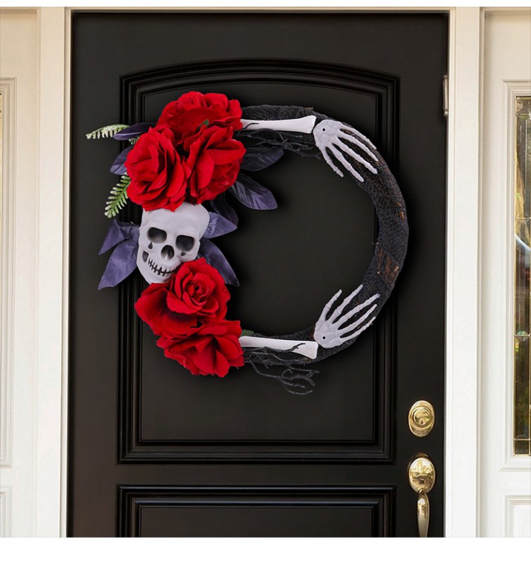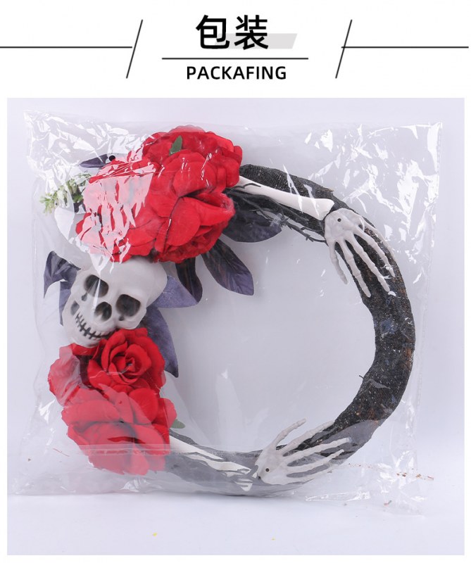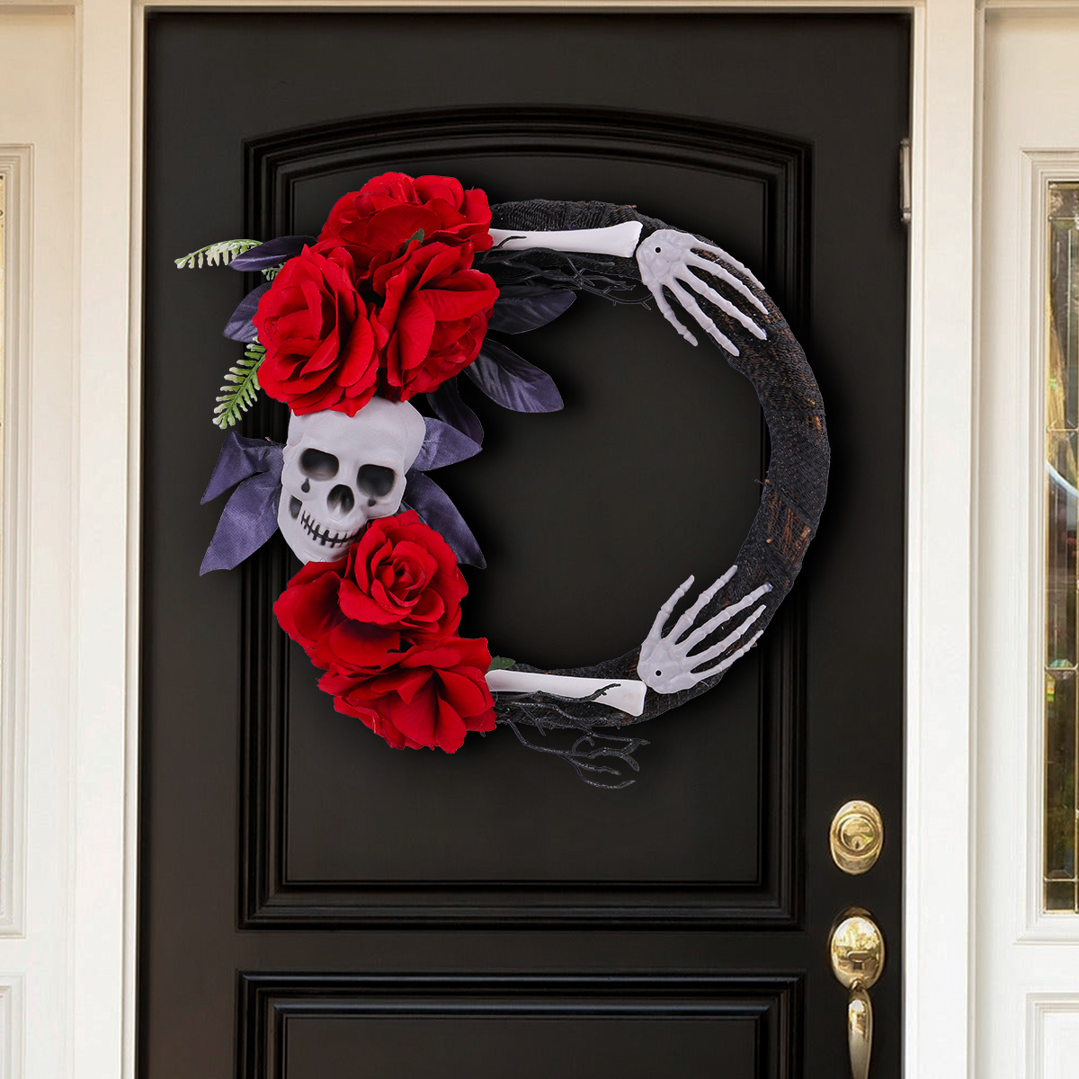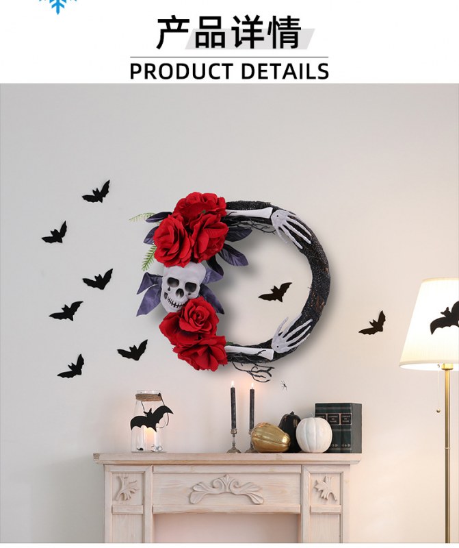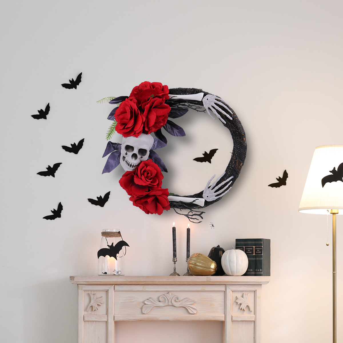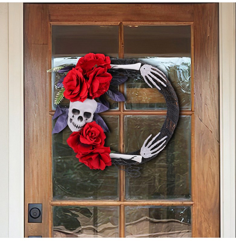 • Jingchen ハロウィン スカル レッド ローズ ゴースト ハンド ガーランド ゴースト フェスティバル パーティー会場 ホラー 小道具 装飾 籐 サークル