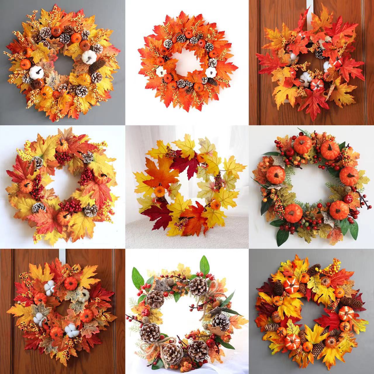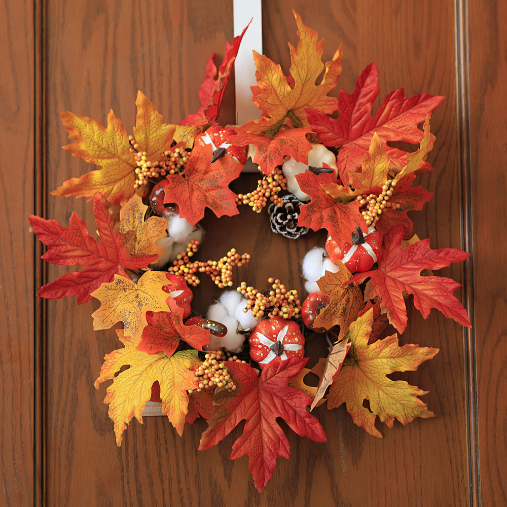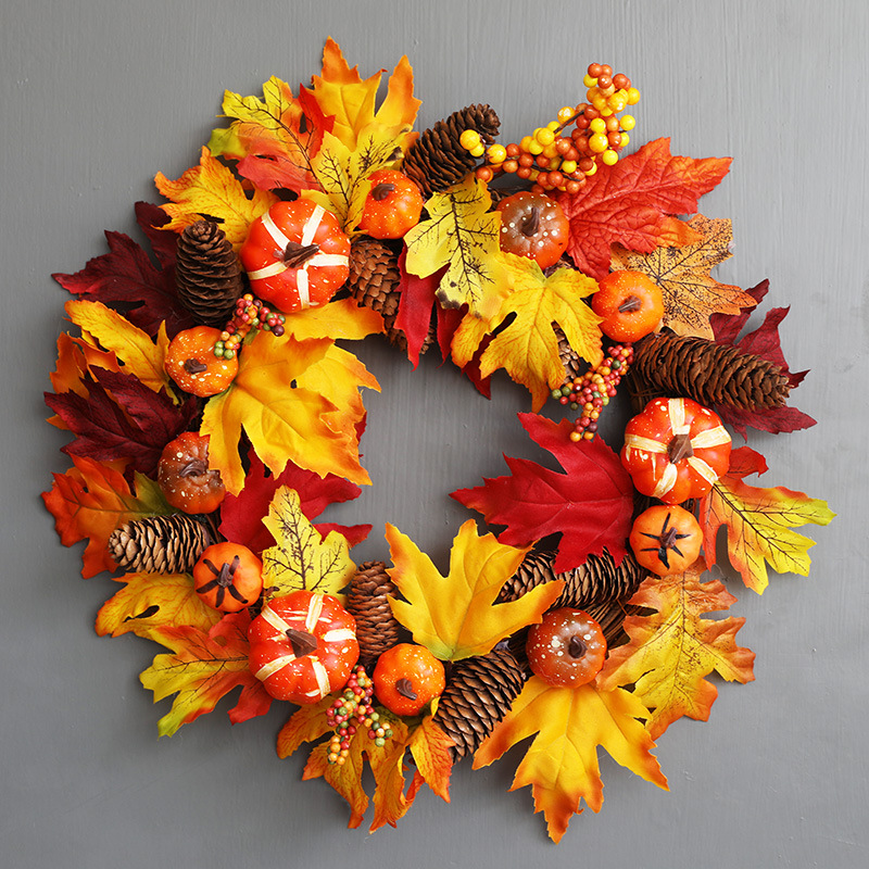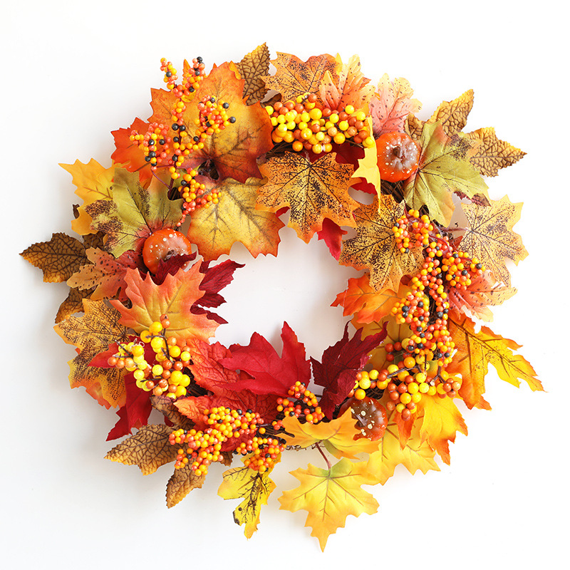 • グリーンレモンハロウィンリースカボチャ装飾収穫祭花輪感謝祭ホームデコレーションドア吊り籐サークル