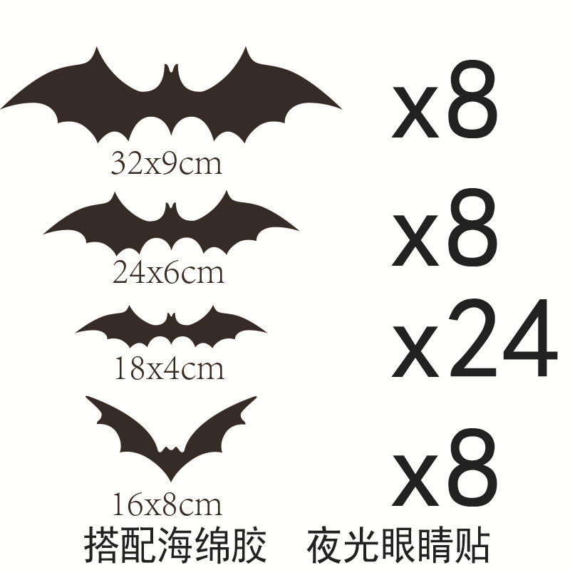 • ハロウィンデコレーション コウモリ120匹、コウモリ60匹、コウモリ28匹とコウモリ44匹、大型壁PETデコレーションステッカー 立体コウモリ
