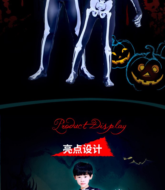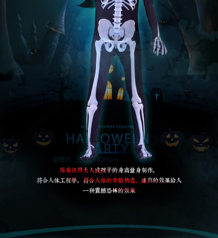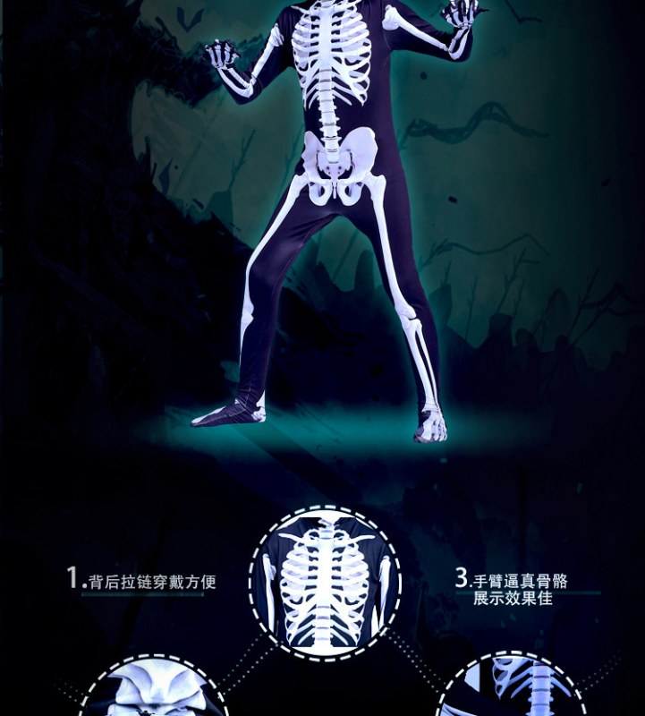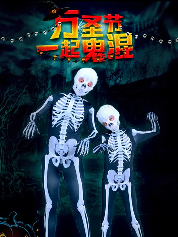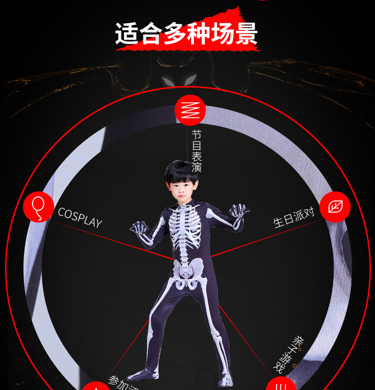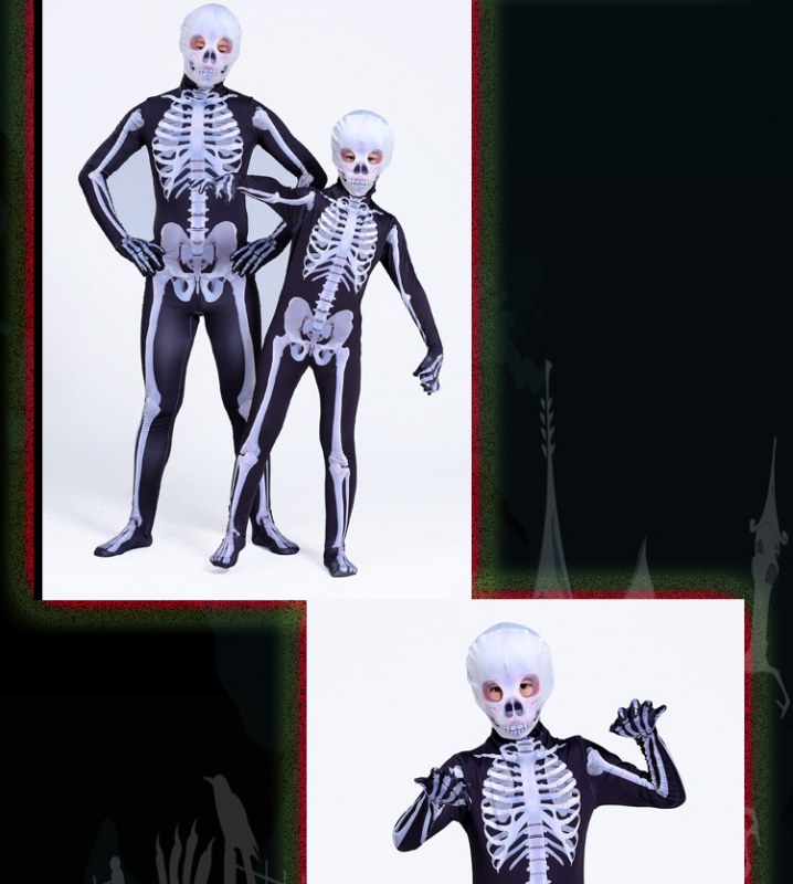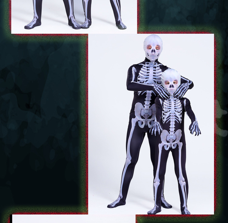 • ハロウィンコスチューム子供スケルトン衣装スケルトンホラーゲーム親子パーティーコスプレ衣装