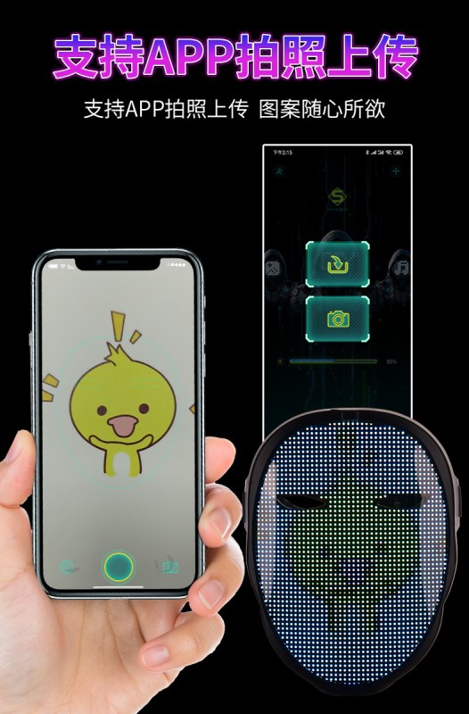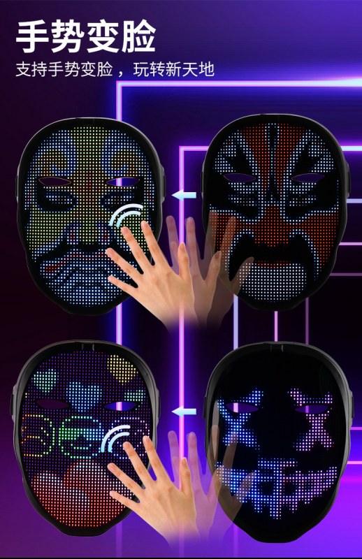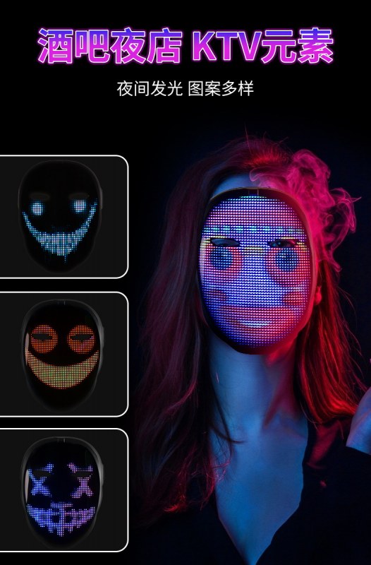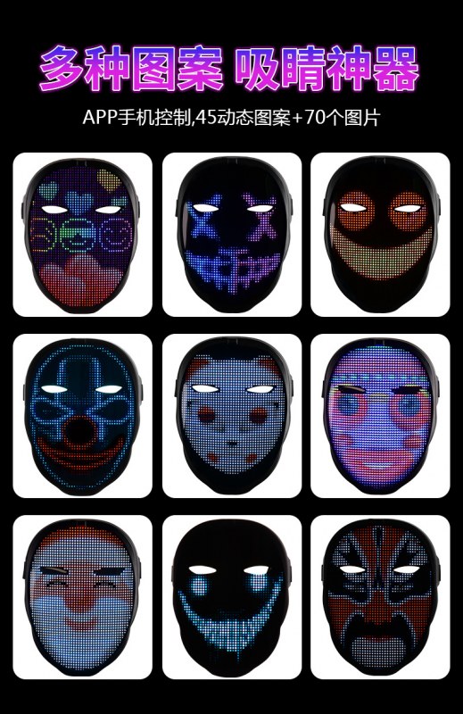 • ハロウィンフルカラーLEDライトアップマスク顔変更マスクパーティーバー小道具APP編集小道具