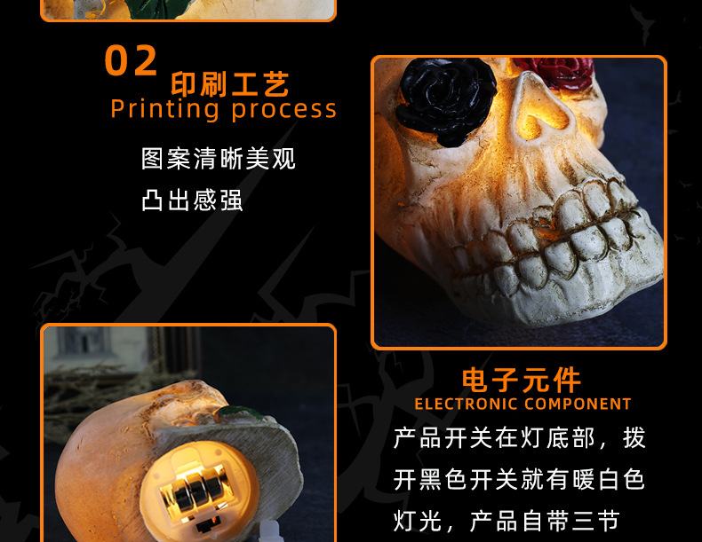 • 新しいハロウィン発光樹脂スカル LED ホラースカル衣装小道具ハロウィン装飾