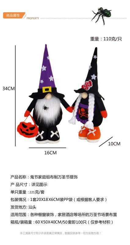 • 新しいハロウィンノーム装飾品魔女ぬいぐるみ顔のない人形カボチャバッグゴーストフェスティバル装飾