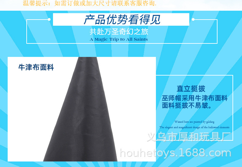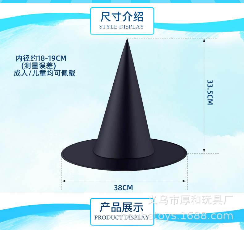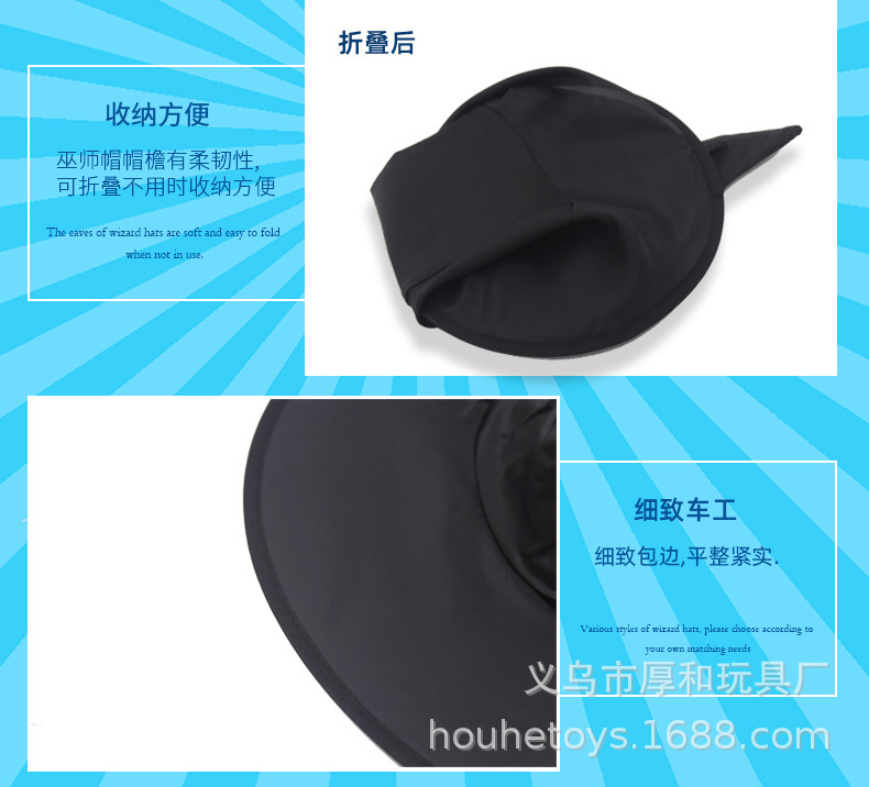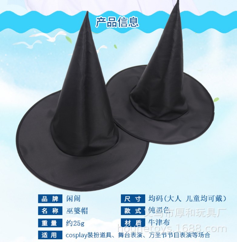 • ハロウィン大人子供魔女魔女帽子ハリーポッターウィザード黒オックスフォード布黒帽子卸売