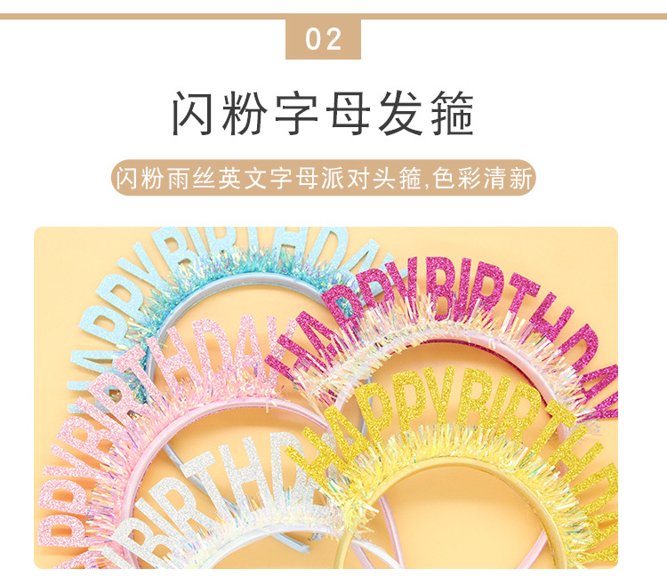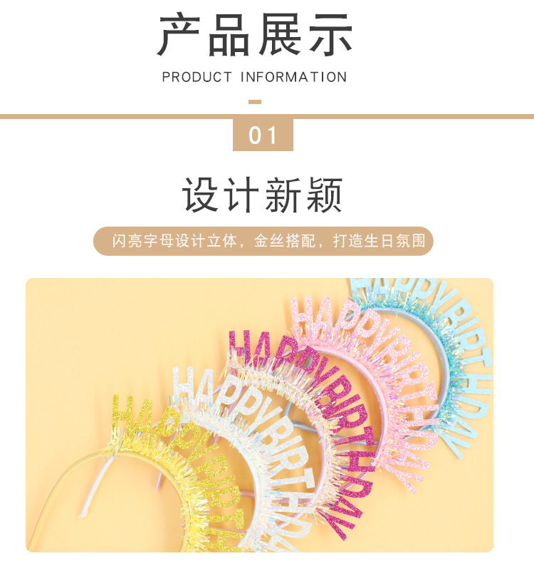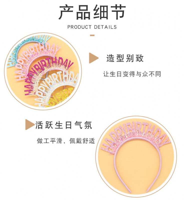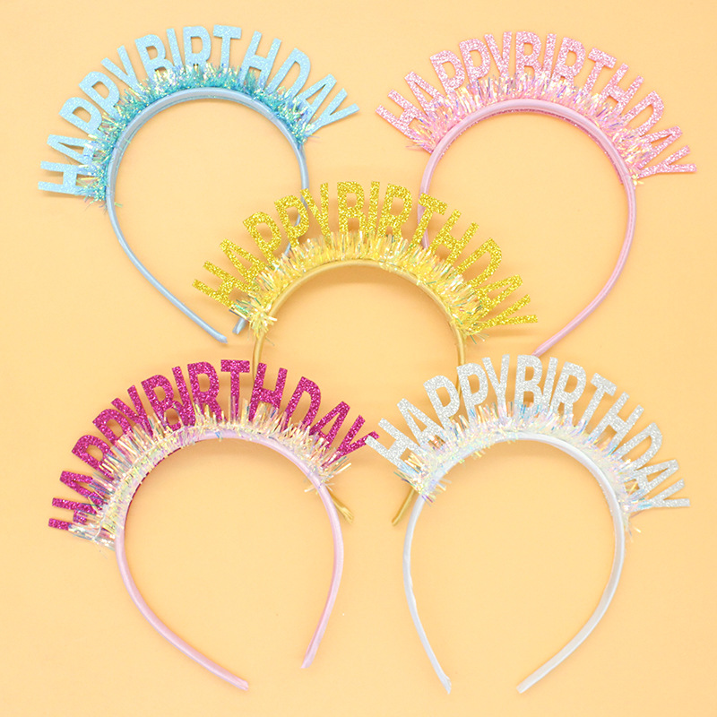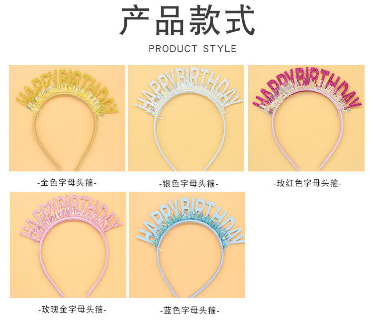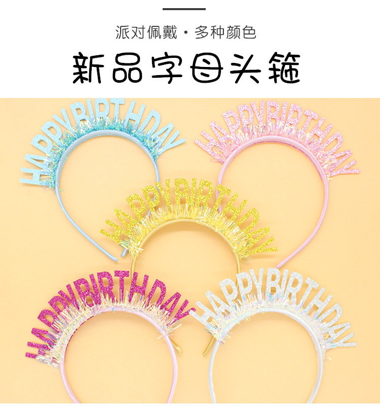 • 新しいグリッターゴールドワイヤー誕生日ヘッドバンド英語の文字ハッピーバースデーヘッドバンドパーティーの雰囲気の装飾帽子
