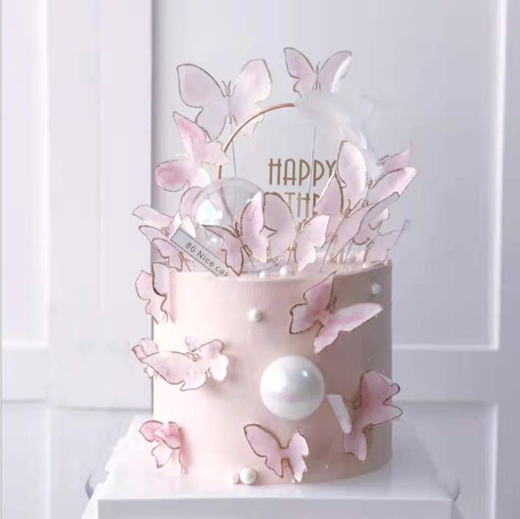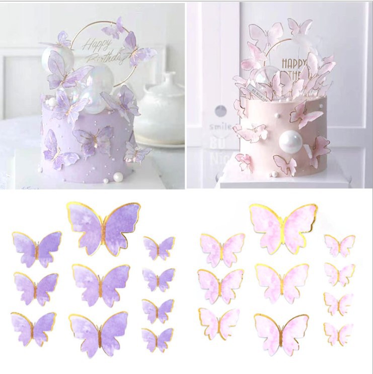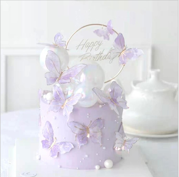 • インスタイルインターネットセレブケーキデコレーション美しい紫ピンク紙蝶インサートカードプラグイン女神デザートテーブルデコレーション