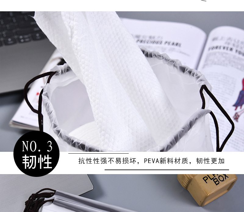 • フェイスタオルバッグ防水バッグ綿クレンジングタオル巾着ポケットPEVA靴下包装袋