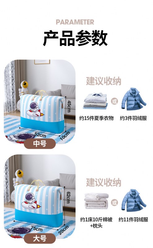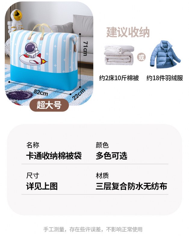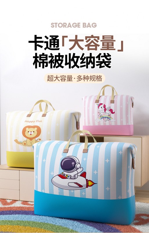 • 移動バッグ、旅行用ポータブル荷物収納袋、家庭用防塵収納袋、幼稚園漫画キルト収納袋