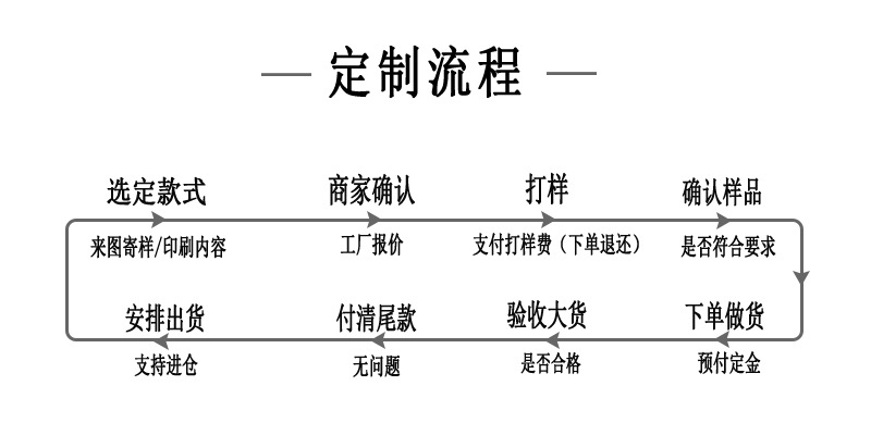 弊社が取り扱っている商品は、自社の海外工場から直送しています。ご入金が確認でき次第に商品を発送いたします。ご注文殺到時や、ご注文数量、種類が多い場合は、発送が遅れる可能性がございます、ご了承ください。ご注文商品の中に在庫がない商品につき、その商品のみキャンセルさせていただき、在庫のある商品のみをまとめて発送させていただきます。また、ご注文後の商品追加や、内容変更、同梱などはお受付しておりません。