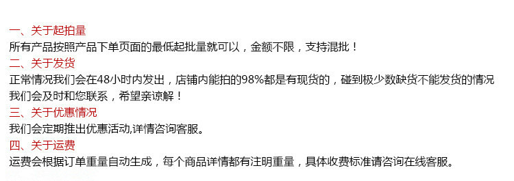 弊社が取り扱っている商品は、自社の海外工場から直送しています。ご入金が確認でき次第に商品を発送いたします。ご注文殺到時や、ご注文数量、種類が多い場合は、発送が遅れる可能性がございます、ご了承ください。ご注文商品の中に在庫がない商品につき、その商品のみキャンセルさせていただき、在庫のある商品のみをまとめて発送させていただきます。また、ご注文後の商品追加や、内容変更、同梱などはお受付しておりません。