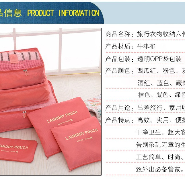 • 韓国風旅行収納6点セット荷物と衣類防水オーガナイザーバッグ収納袋6点セット