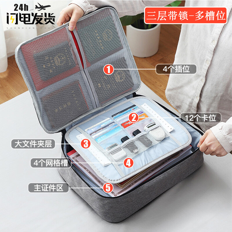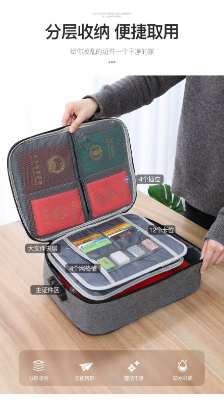 • 多層書類収納バッグ大容量多機能収納ボックスクレジットカード運転免許証重要書類パッケージ