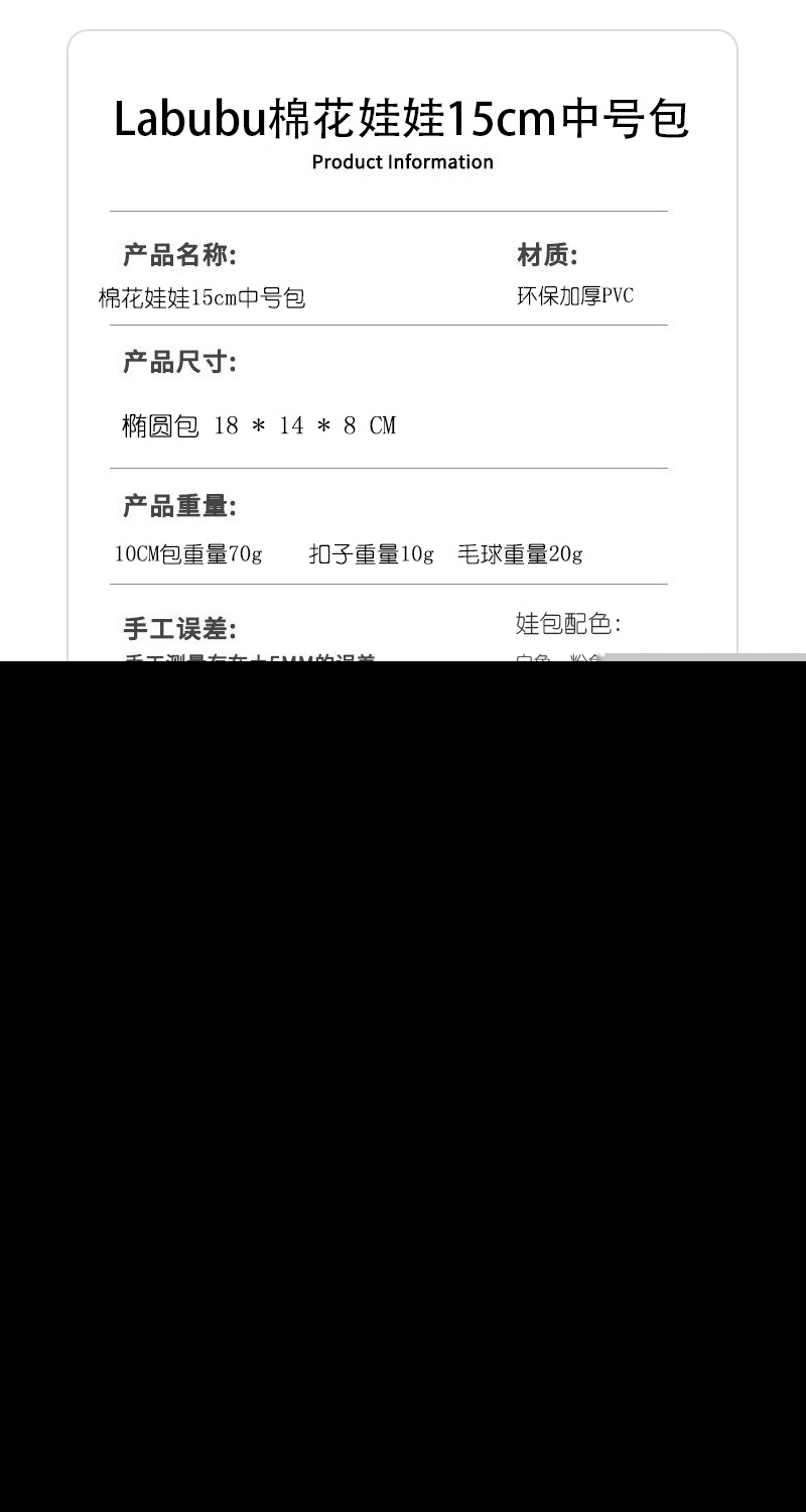 • 18*14*8黑色中号(加厚圆扣+大毛球)