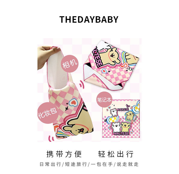 • 化粧品バッグベルクロ漫画かわいい高見えパッチポータブル保護収納袋カメラバッグ