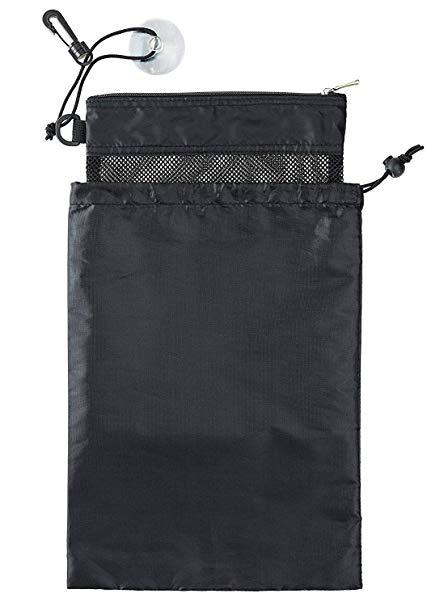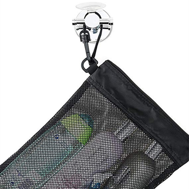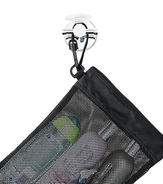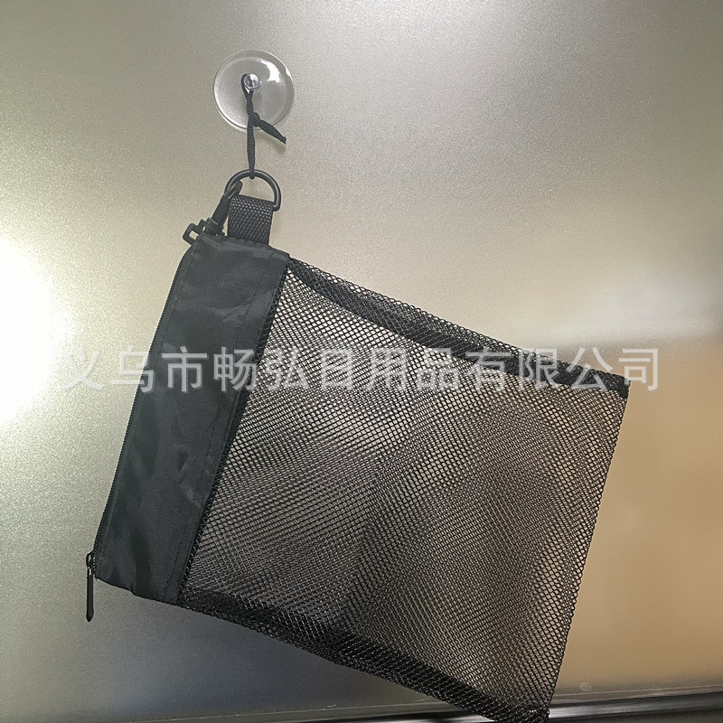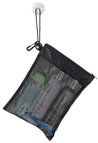 • ブラックメッシュトイレタリーバッグ、バスルーム吊り下げメッシュバッグ、巾着トイレタリーバッグ、ポータブル吊り下げ入浴バッグ