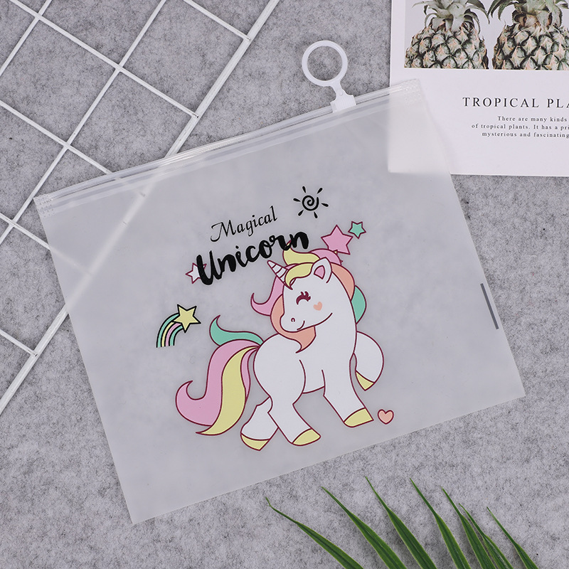 • 半透明 CPE ユニコーンプルタブペンバッグ化粧品プルタブバッグ幼稚園アイススリーブ包装袋整理袋