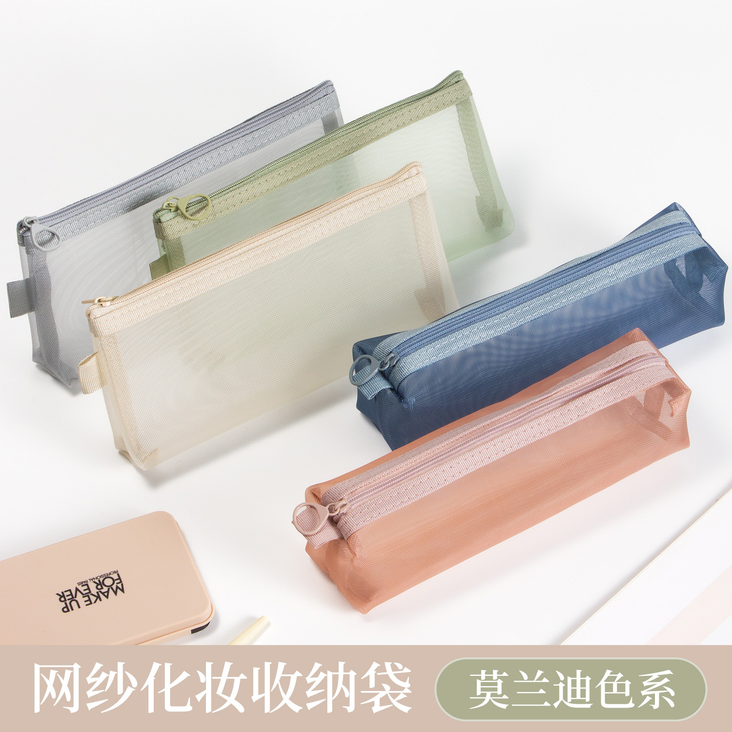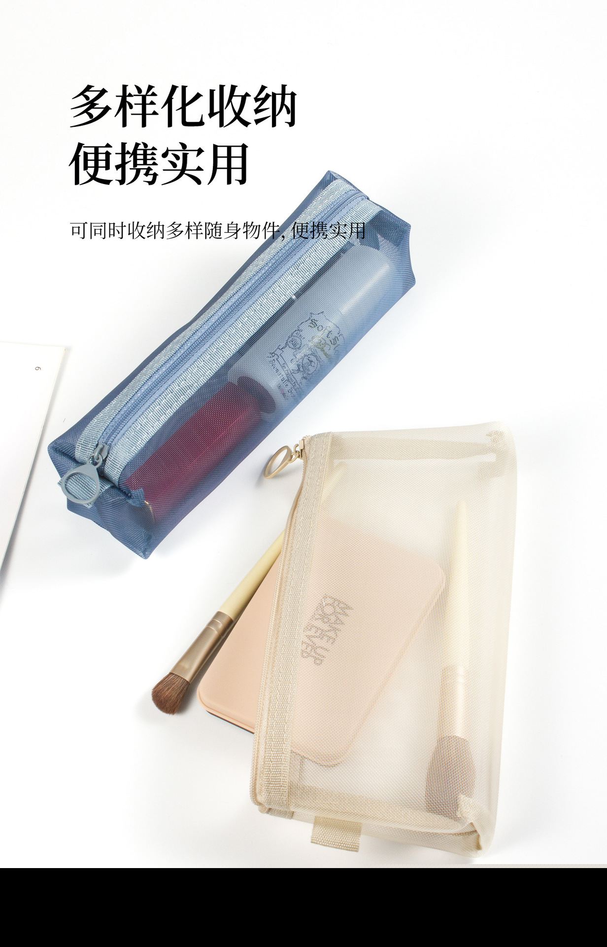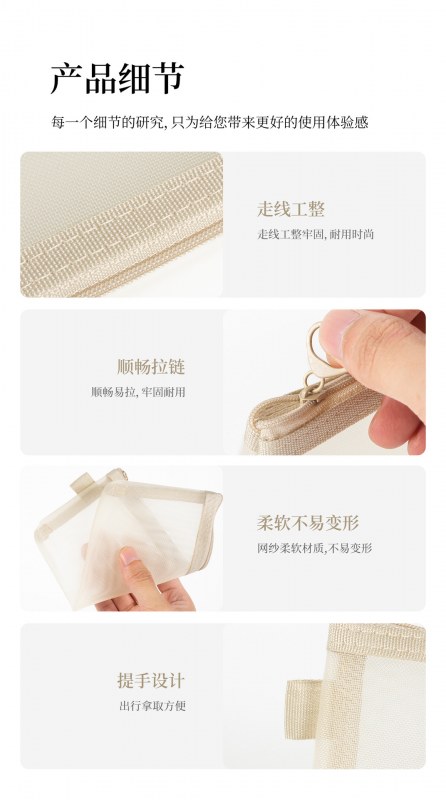• メッシュ化粧品収納袋、大容量、ポータブル透明トイレタリーバッグ、立体ナイロンコインバッグ、カード収納袋