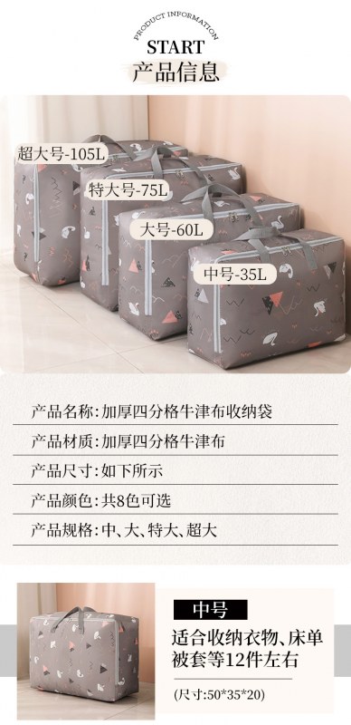 • 肥厚オックスフォード布キルト収納袋衣類収納袋大容量移動バッグ梱包荷物袋卸売