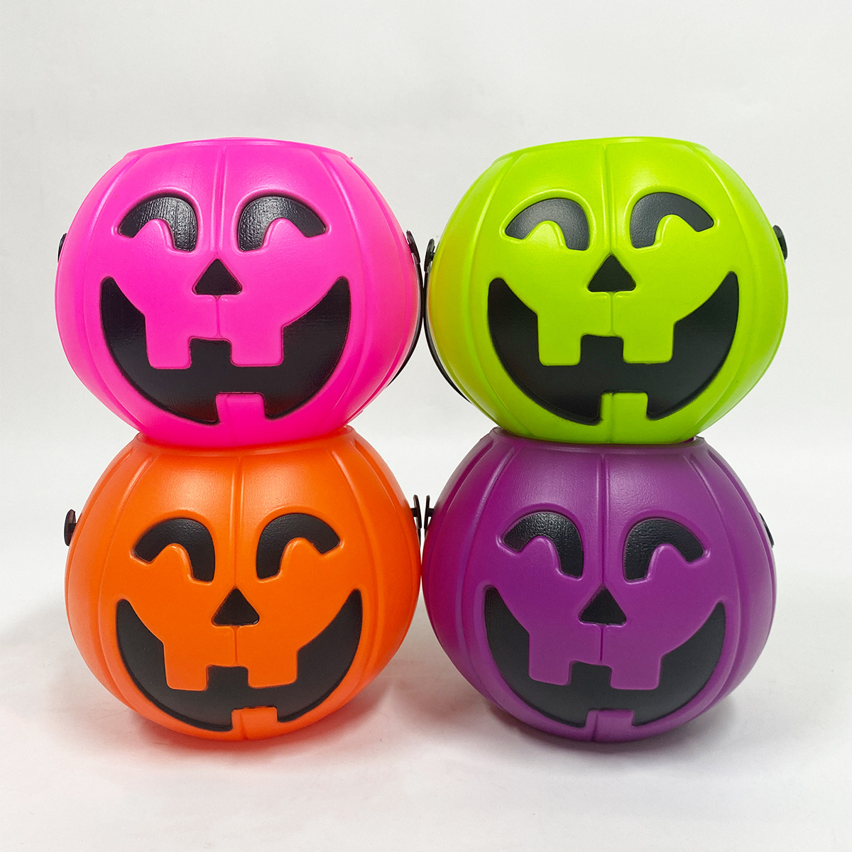 • ハロウィンカボチャバケツランタン蓋付きポータブルカボチャバケツプラスチック子供用キャンディージャー発光装飾用品小道具