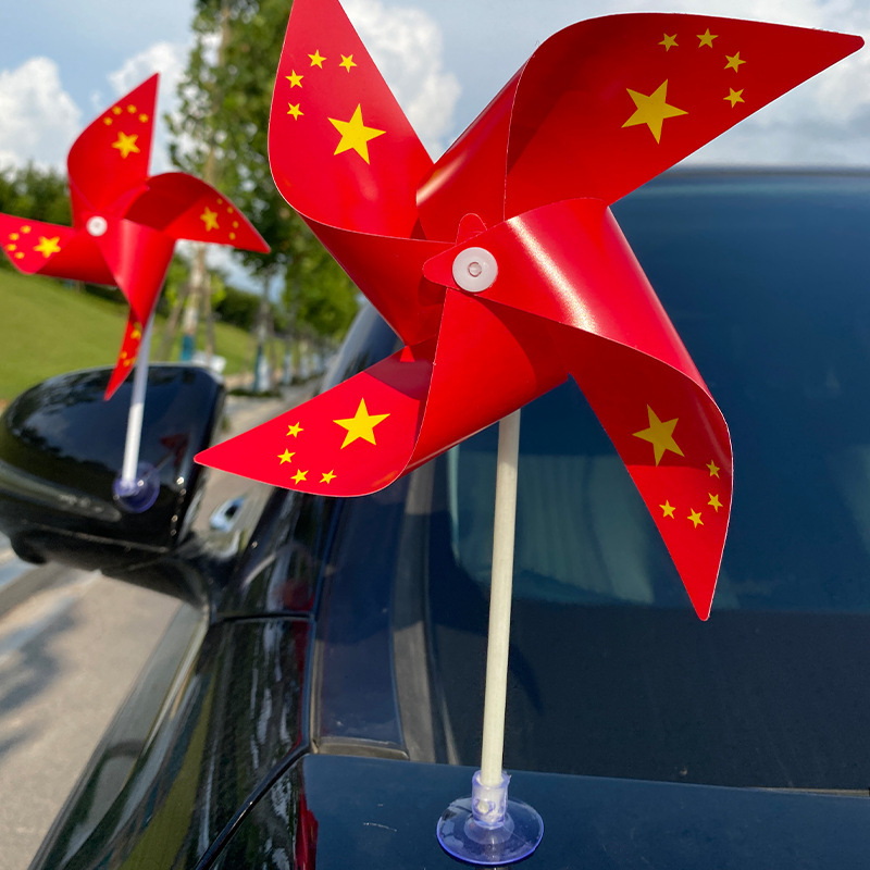 • 手回し小さな赤い旗、車載風車、吸盤付き小さな旗、建国記念日の装飾、回転可能な小さな風車、小さなギフト