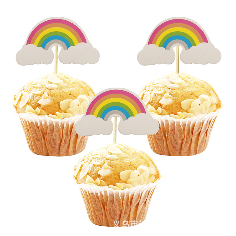 • レインボーケーキインサート レインボーテーマの赤ちゃんの誕生日パーティーのデコレーションケーキインサート