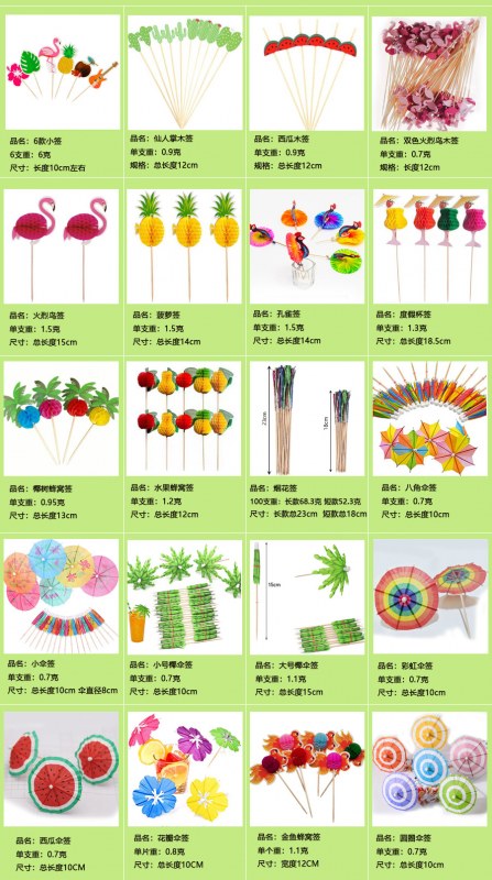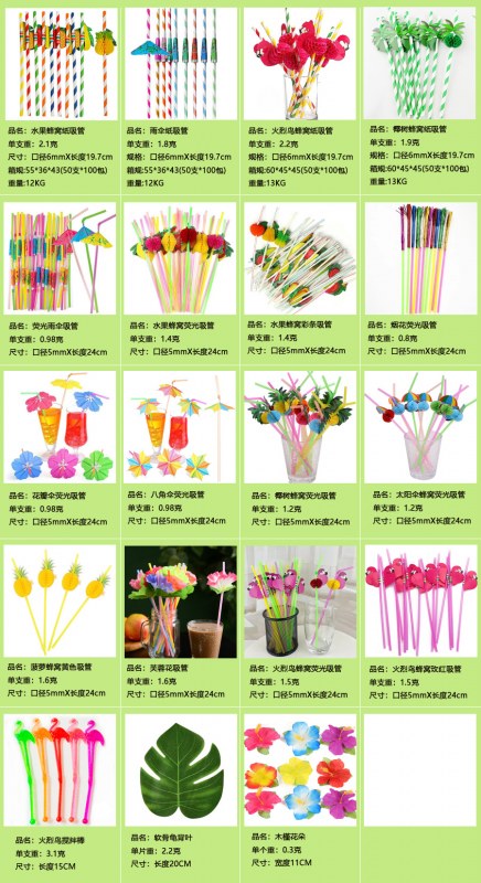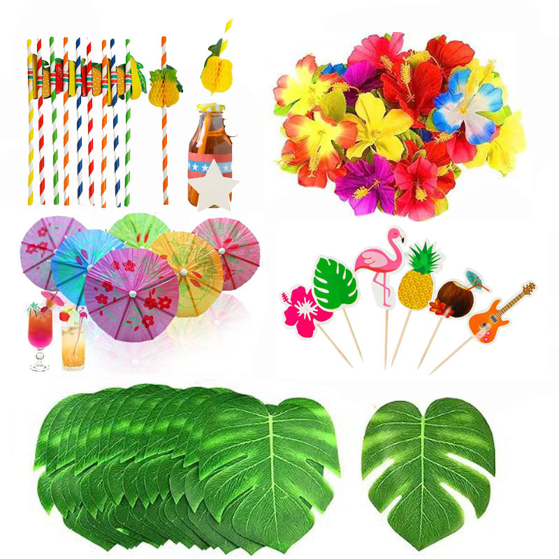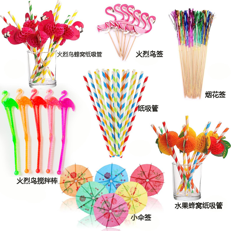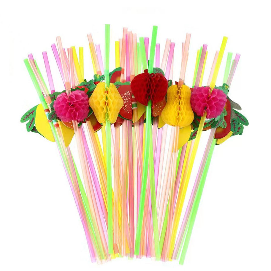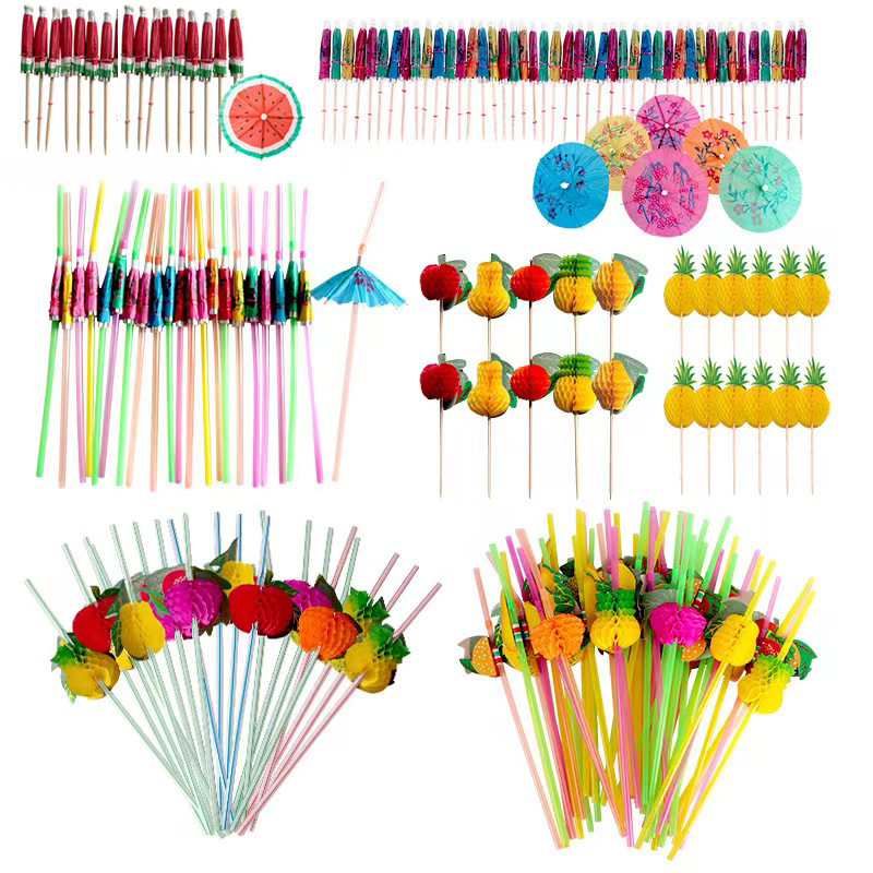 • パーティーデコレーションハワイアンストローフルーツ傘サイン3Dハニカムセット傘紙ストロー