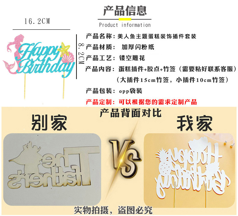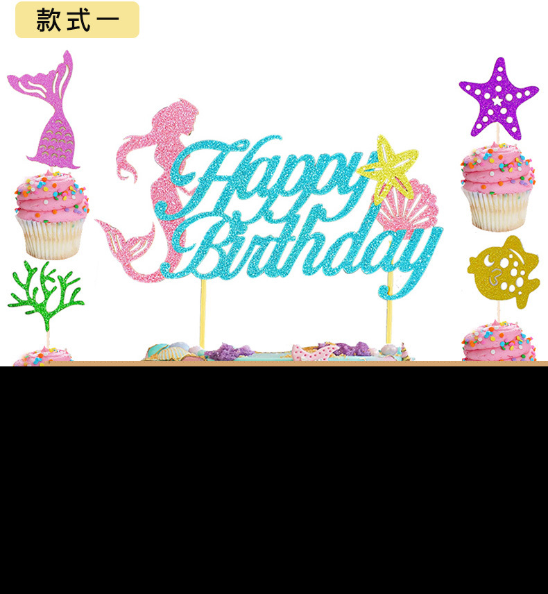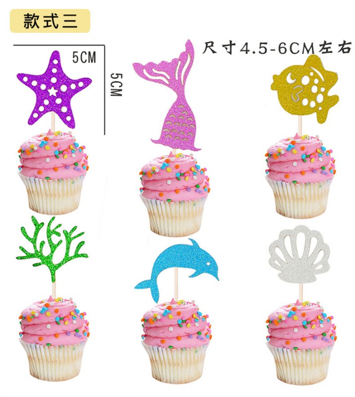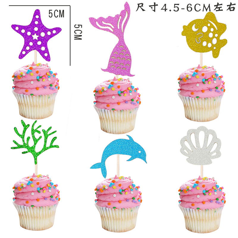 • マーメイドプリンセスパーティーデコレーションインサート ヒトデデザートテーブルインサート 誕生日パーティーフィッシュテールケーキインサート
