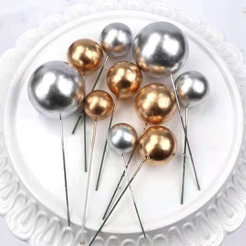 • ケーキデコレーションインサートゴールドボールシルバーボールカラーフォームボールマカロンカラーダイヤモンドケーキデコレーション