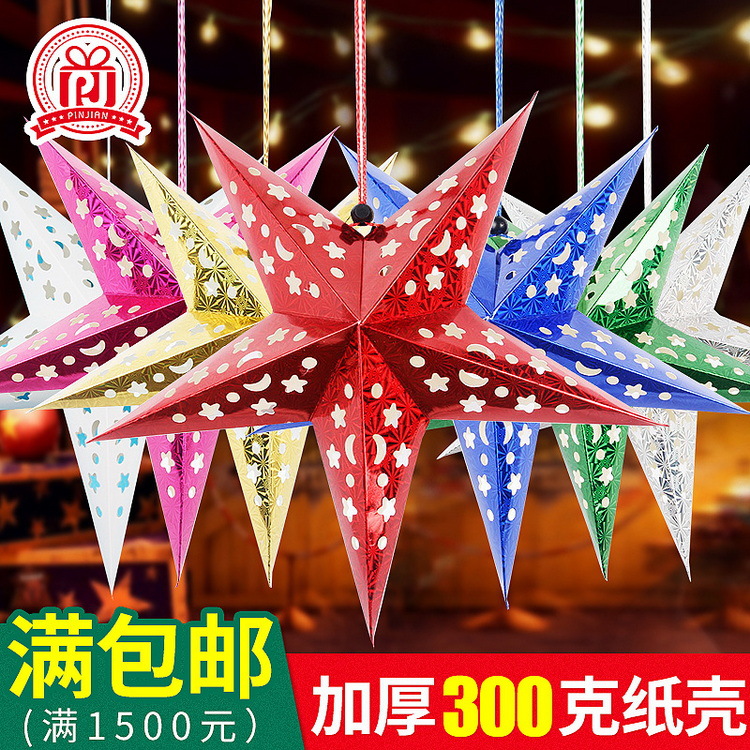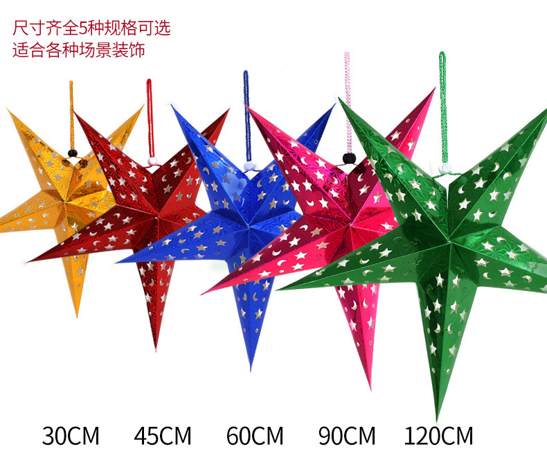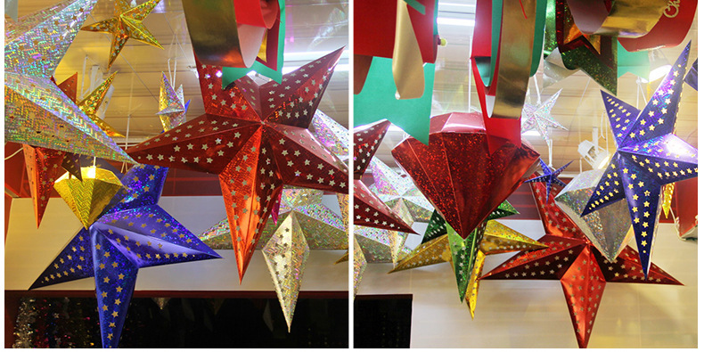 • クリスマス装飾用品レーザー中空五芒星祭り誕生日ショッピングモールシーンレイアウト立体スターペンダント