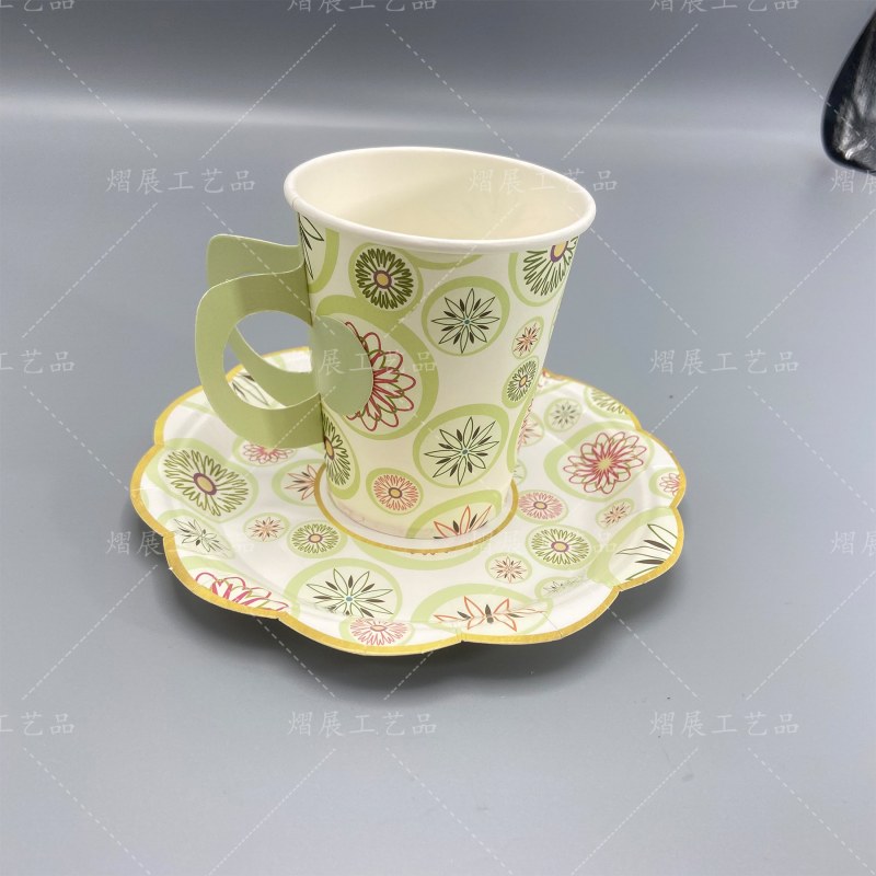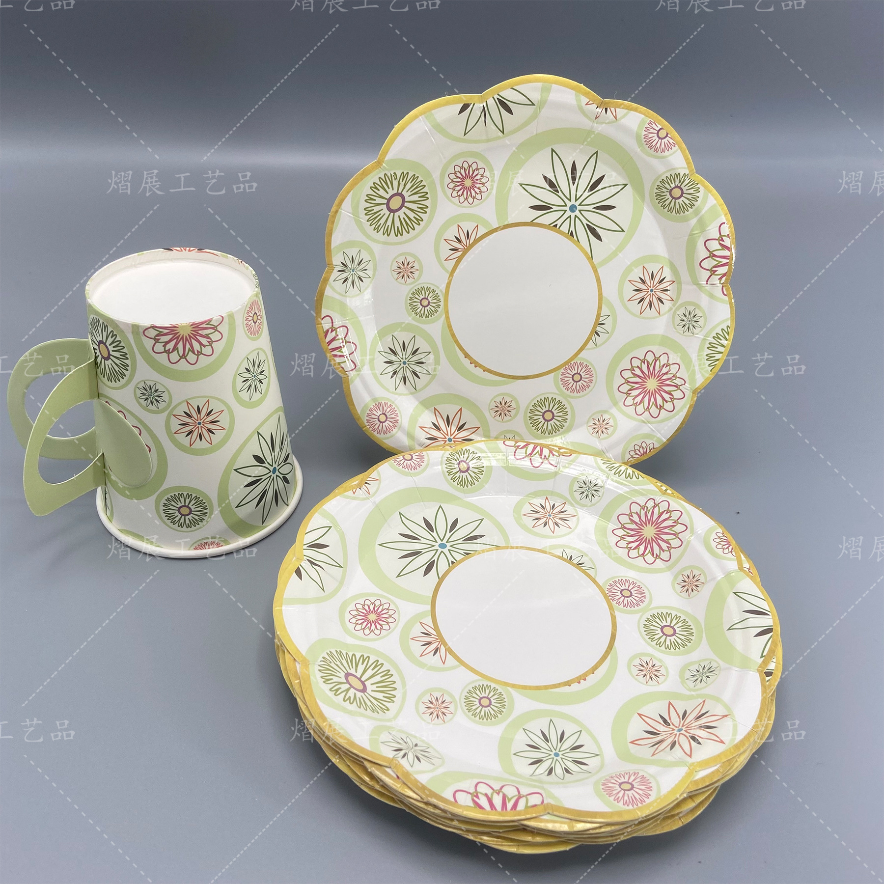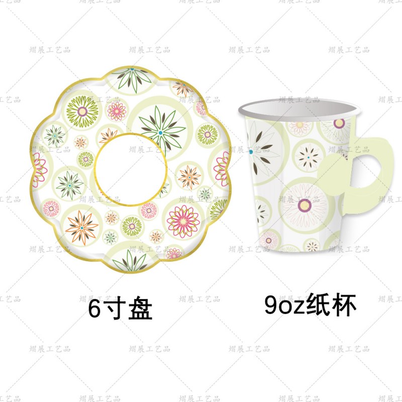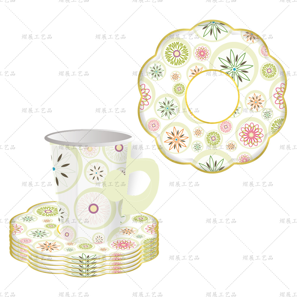 • ティーパーティーデコレーション使い捨て紙コップハンドル付きフラワーデザート6インチ紙皿パーティー使い捨て紙食器