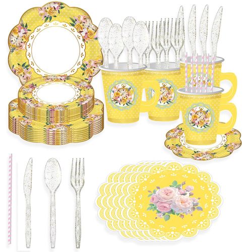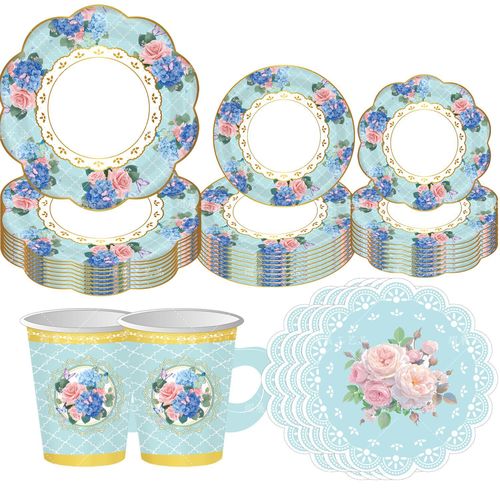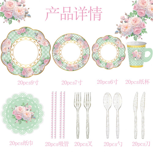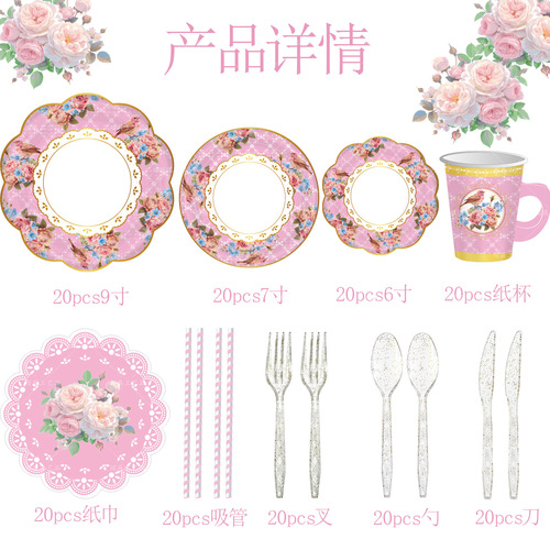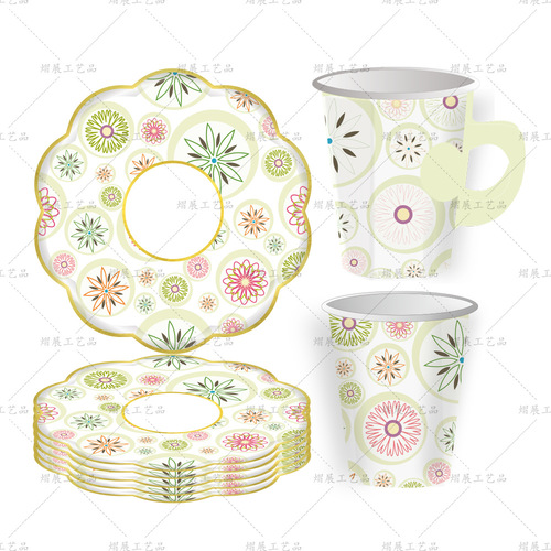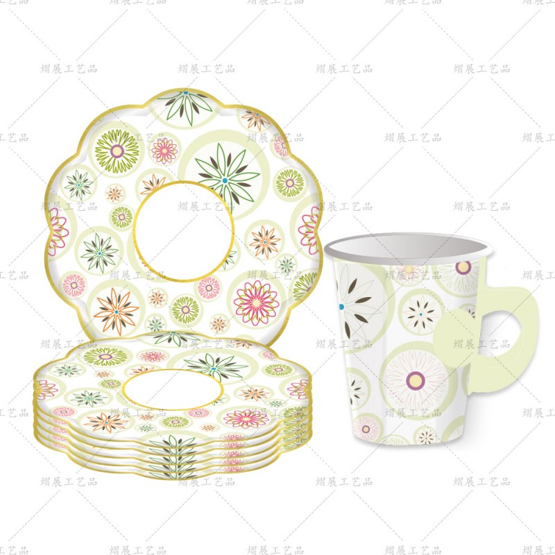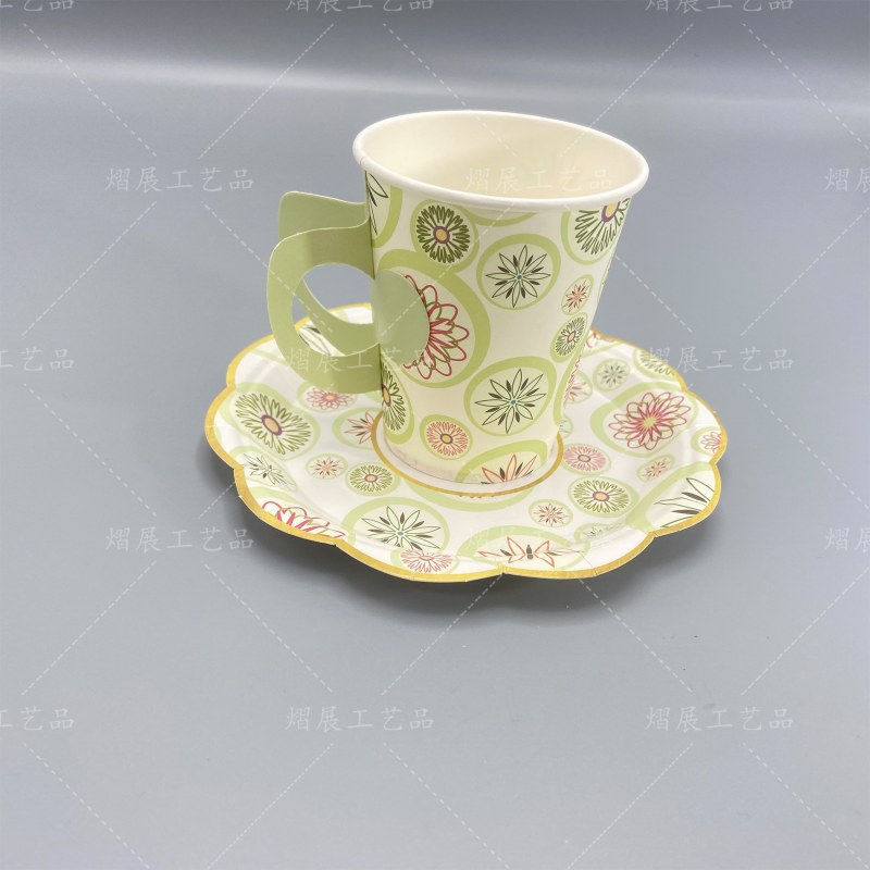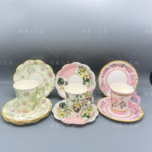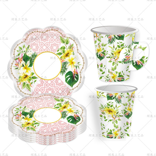 • ティーパーティーデコレーション使い捨て紙コップハンドル付きフラワーデザート6インチ紙皿パーティー使い捨て紙食器