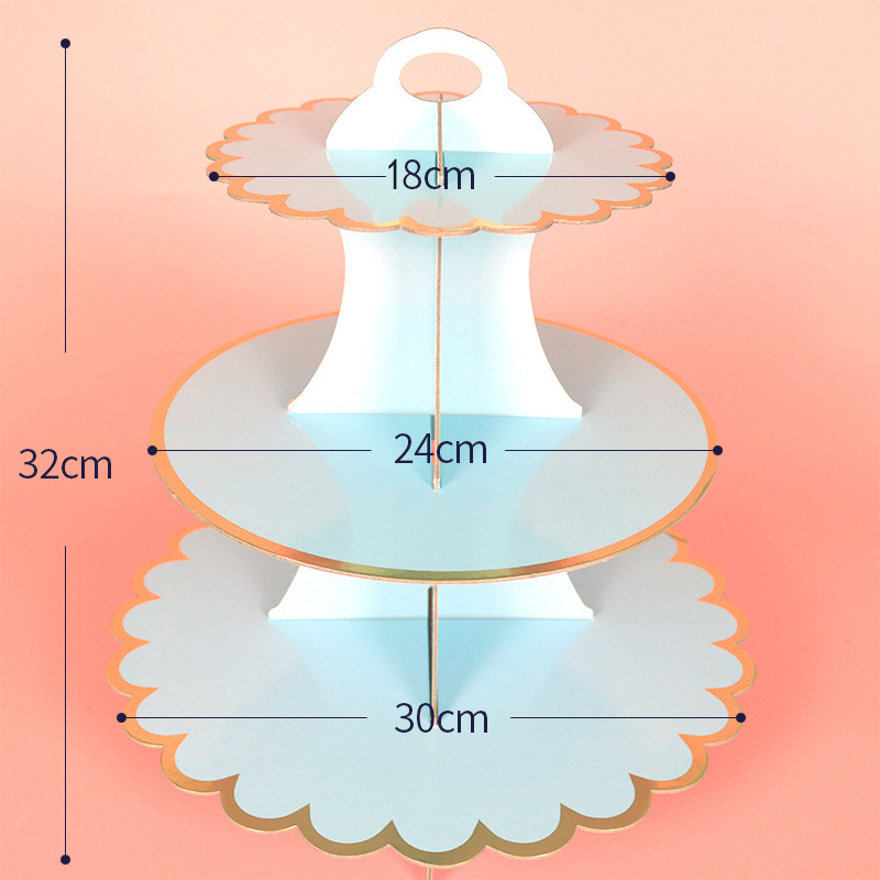 • クリエイティブ使い捨て多層紙ケーキスタンド誕生日パーティー用品三層ホットスタンピングデザートテーブルケーキデコレーション