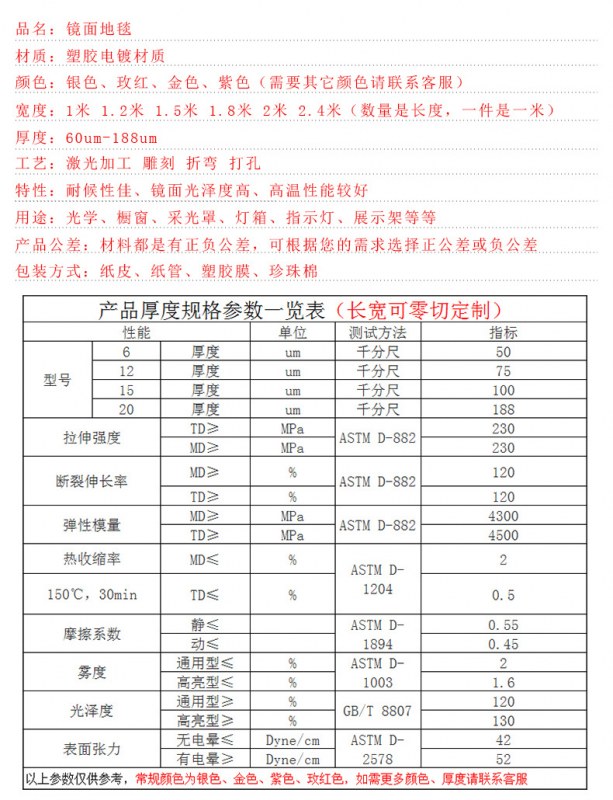 サイズ: 0.12 (片面紫、片面銀) 幅 1 メートル (開始ショット 10 メートル)< br >サイズ: 0.12 (片面紫と片面シルバー) 幅 1.2 メートル (10 メートルから)