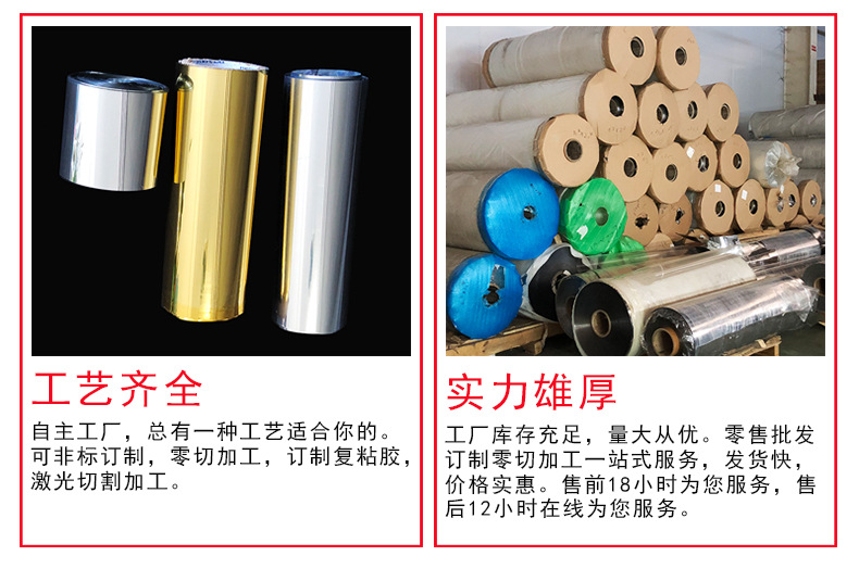 サイズ:厚さ0.12mm、幅1.8メートル、片面ゴールドとシルバー1枚(開始価格は10メートル)