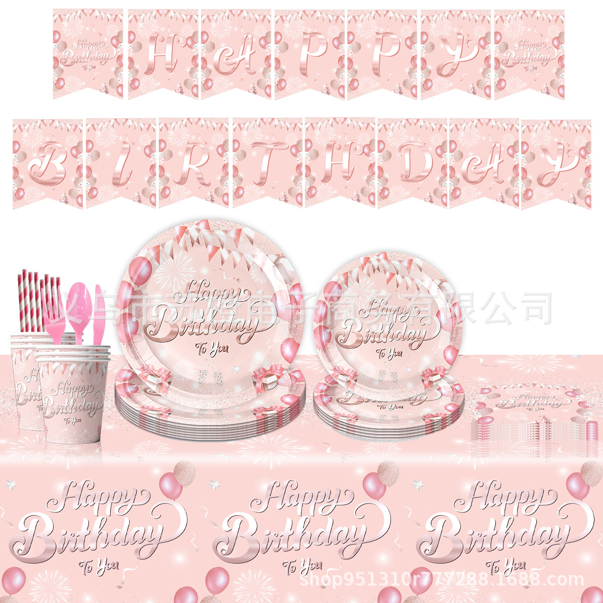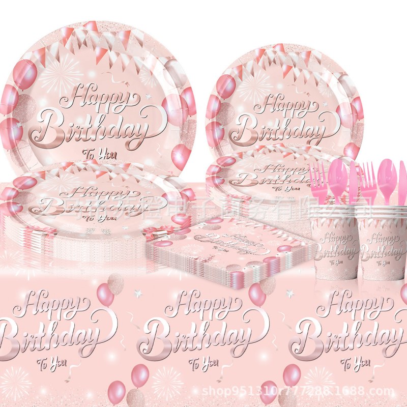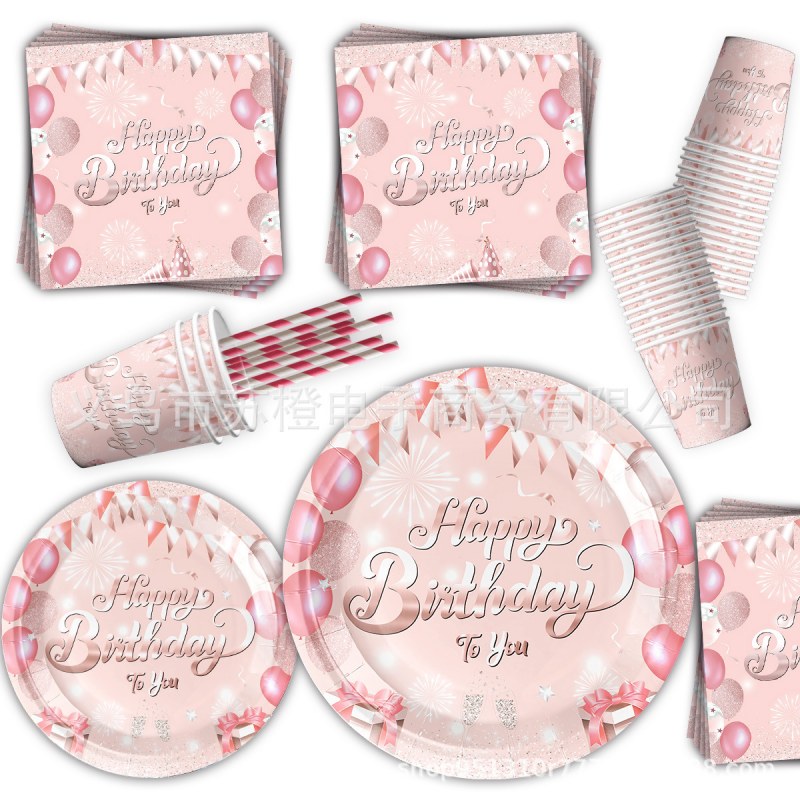 • ピンクダイヤモンド子供の誕生日パーティー食器ローズゴールド紙皿ティッシュテーブルクロス装飾パーティー用品
