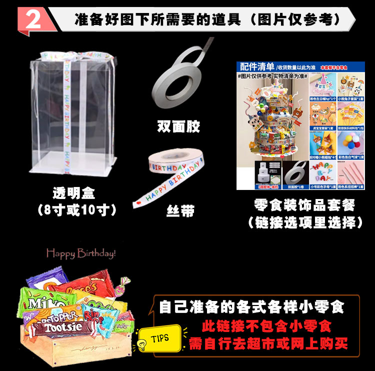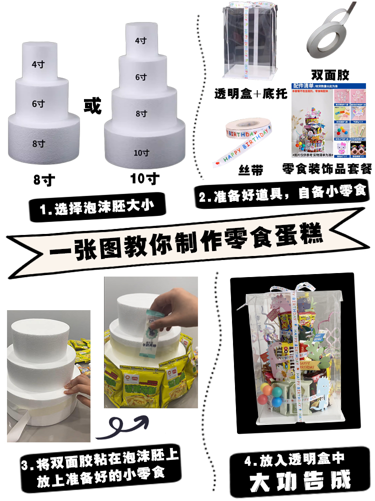• 8寸方形透明盒+厚底托+8寸泡沫胚+丝带(25码) 组合装