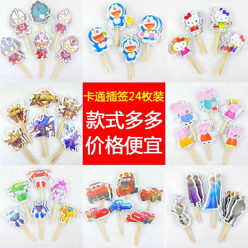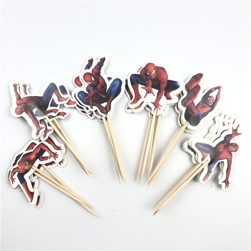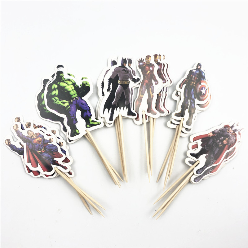 • モンスターと戦うスーパーマン、スパイダーマン、ソフィア、エルサ用のつまようじケーキデコレーションインサート24個、デザートテーブルインサート。