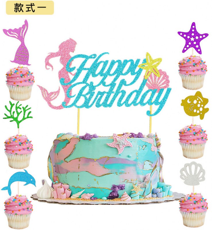 • マーメイドイングリッシュケーキインサート夏の誕生日パーティーヒトデシェルデザートテーブルデコレーションインサート