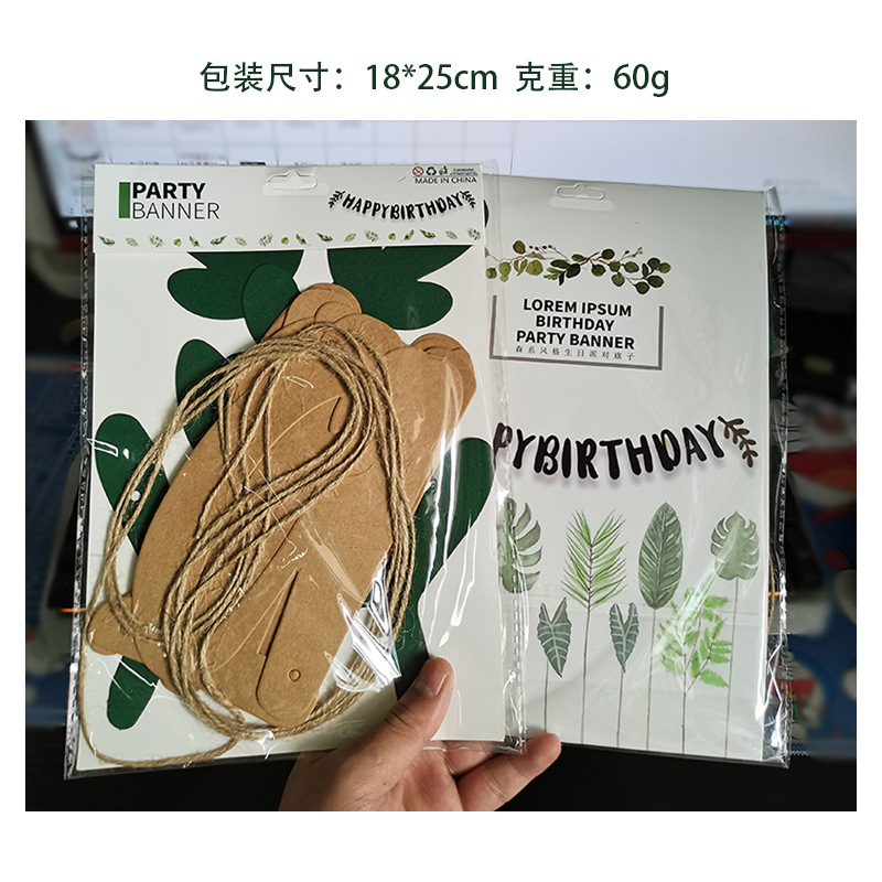 • インフォレストリーフプルフラグハッピーバースデーレターバナー誕生日背景壁配置牧歌的な真珠光沢のある紙プルフラワー