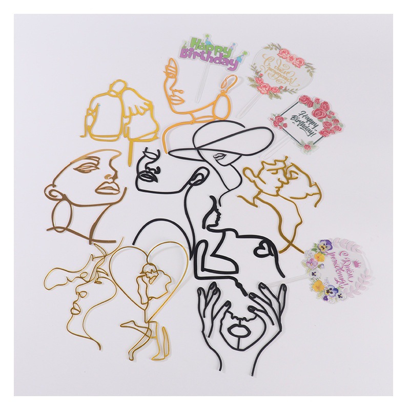 • 美しいケーキカード DIY ケーキサラウンド装飾抽象的な顔のシルエット撮影小道具誕生日装飾