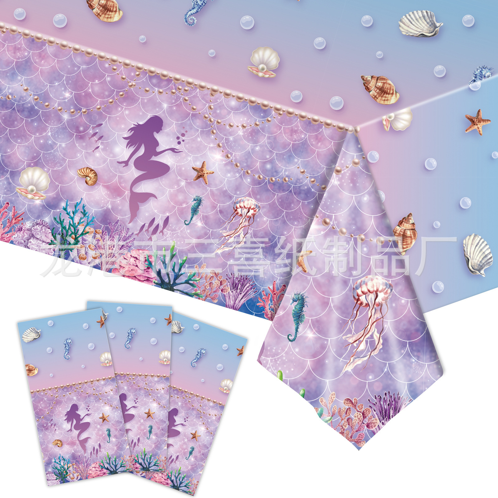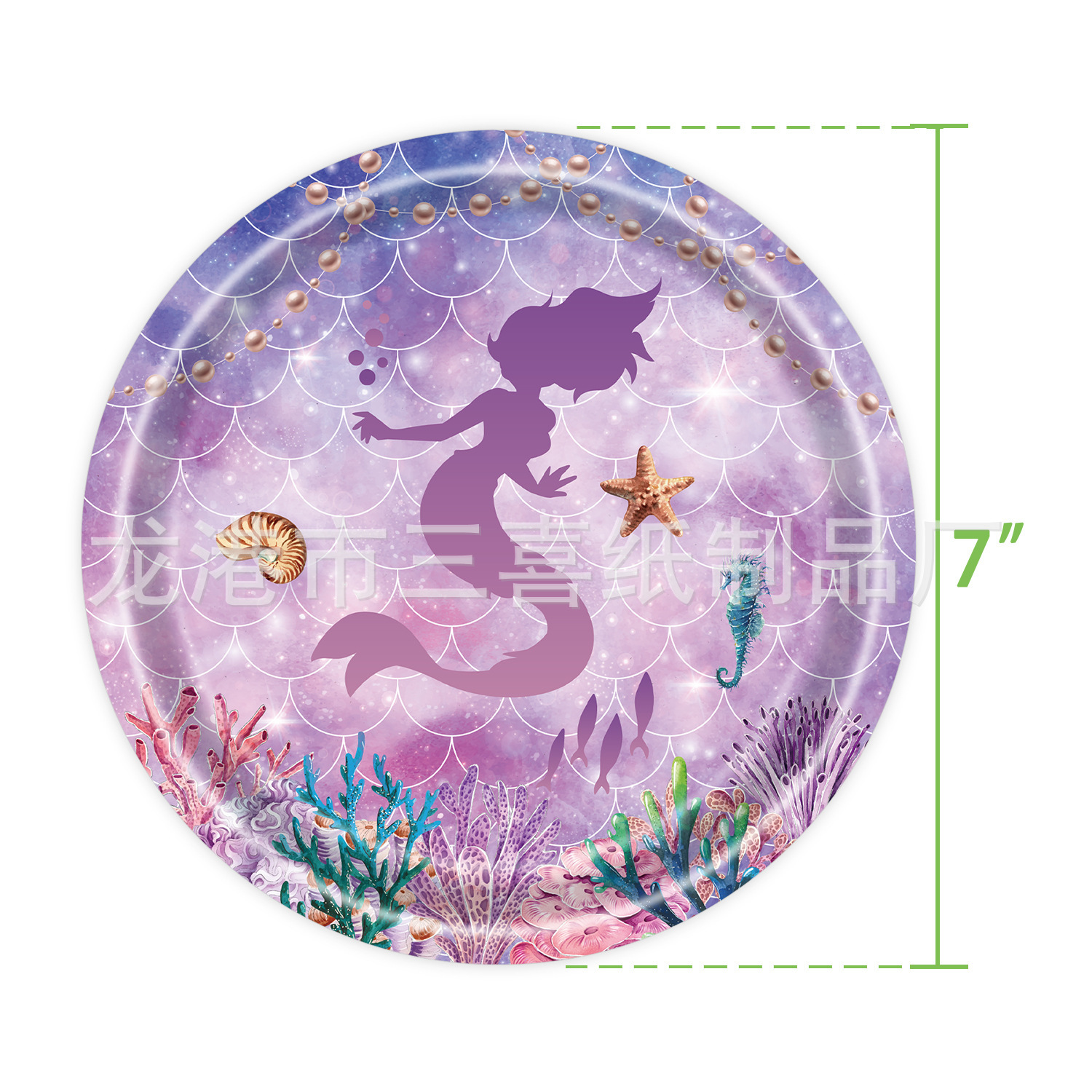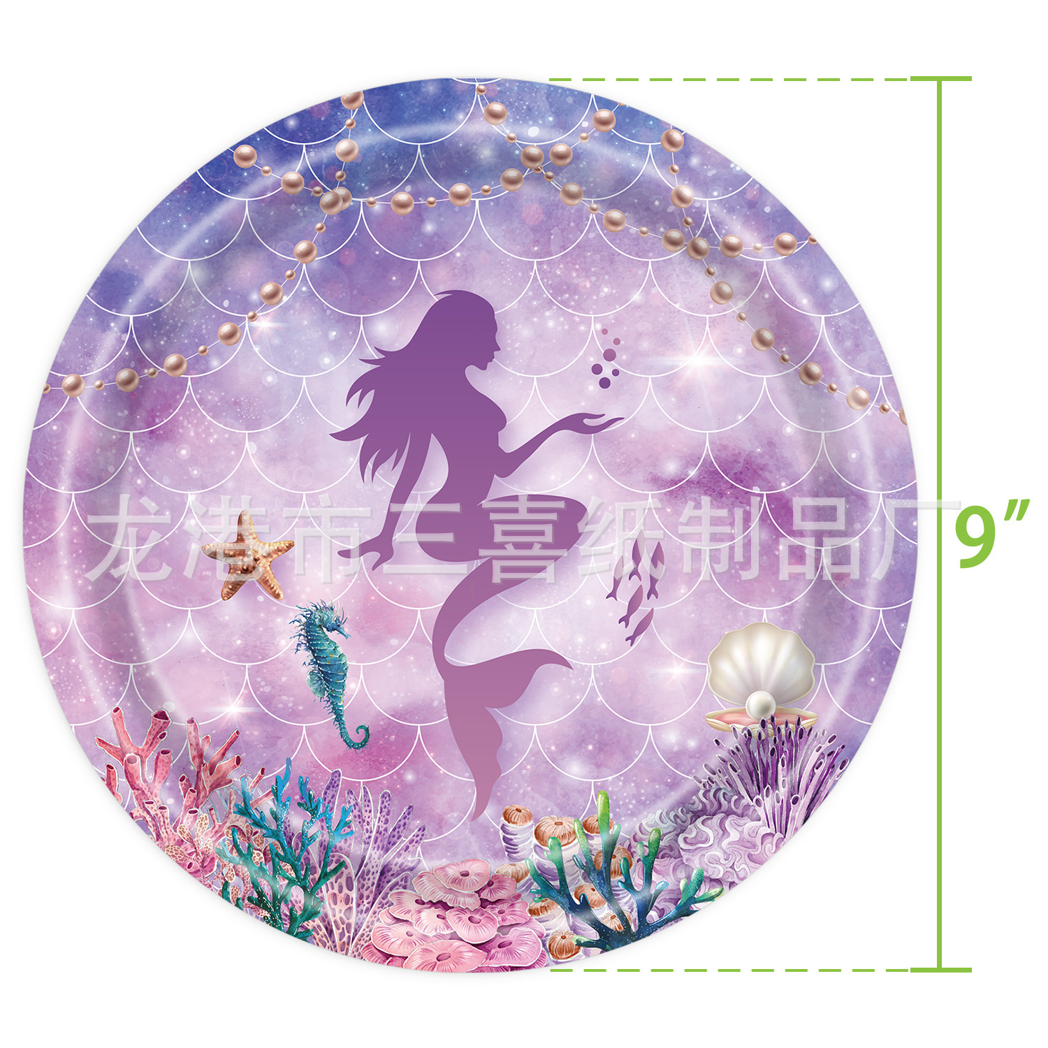 • 新しいファンタジーピンクとパープルマーメイドテーマパーティー紙皿子供の誕生日パーティー食器セットマーメイド