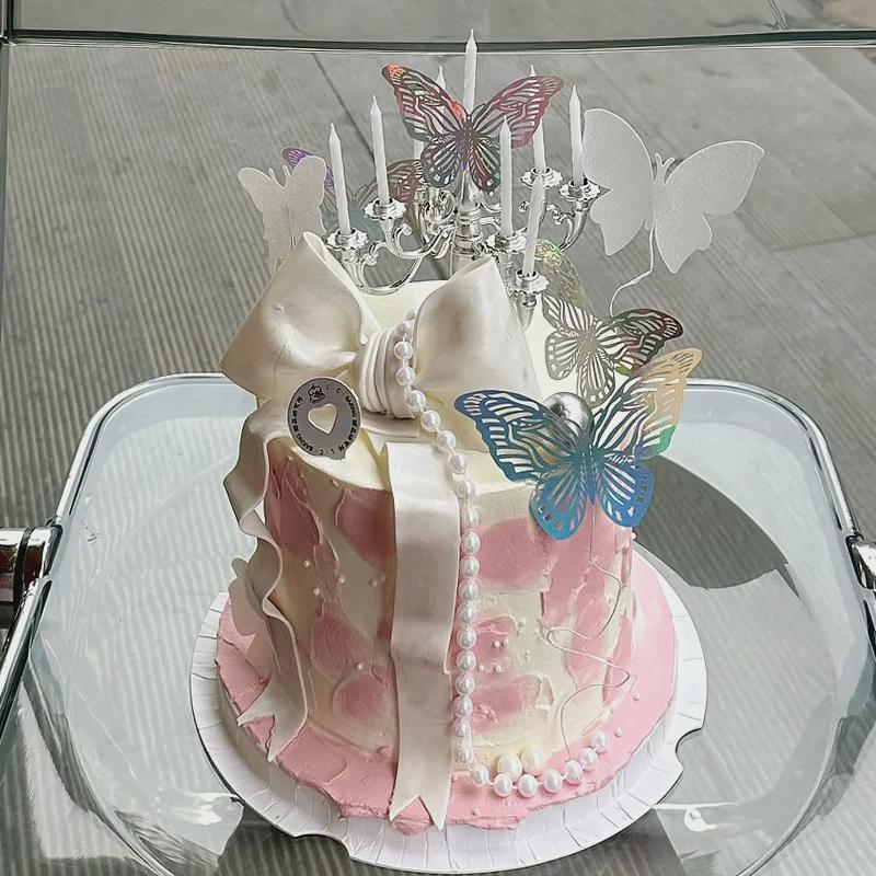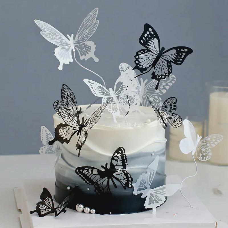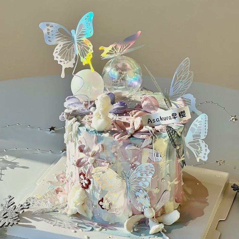 • 蝶のケーキデコレーションプラグイン三次元ホワイトファンタジーオーナメントインターネット有名人イン女神誕生日デザートベーキングプラグイン