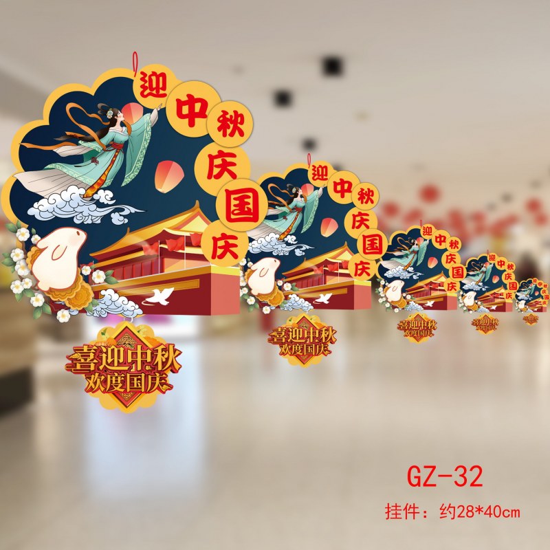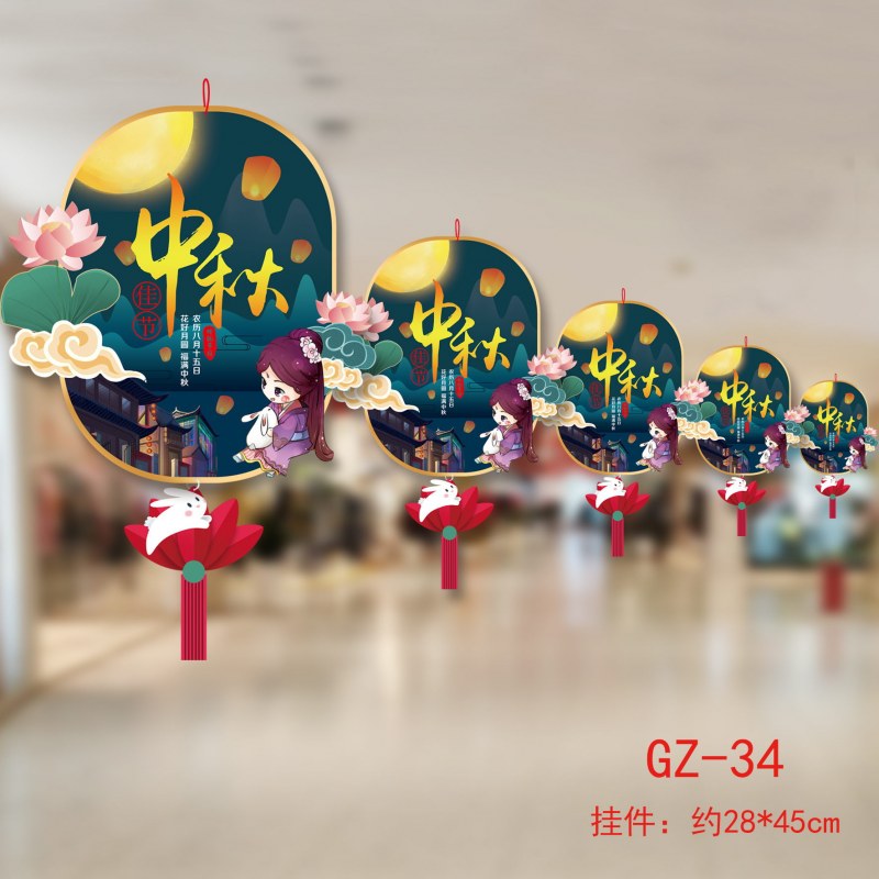 • 装飾旗ショップショッピングモールウィンドウ宝石店銀行シーンレイアウトペンダント中秋吊り下げ旗